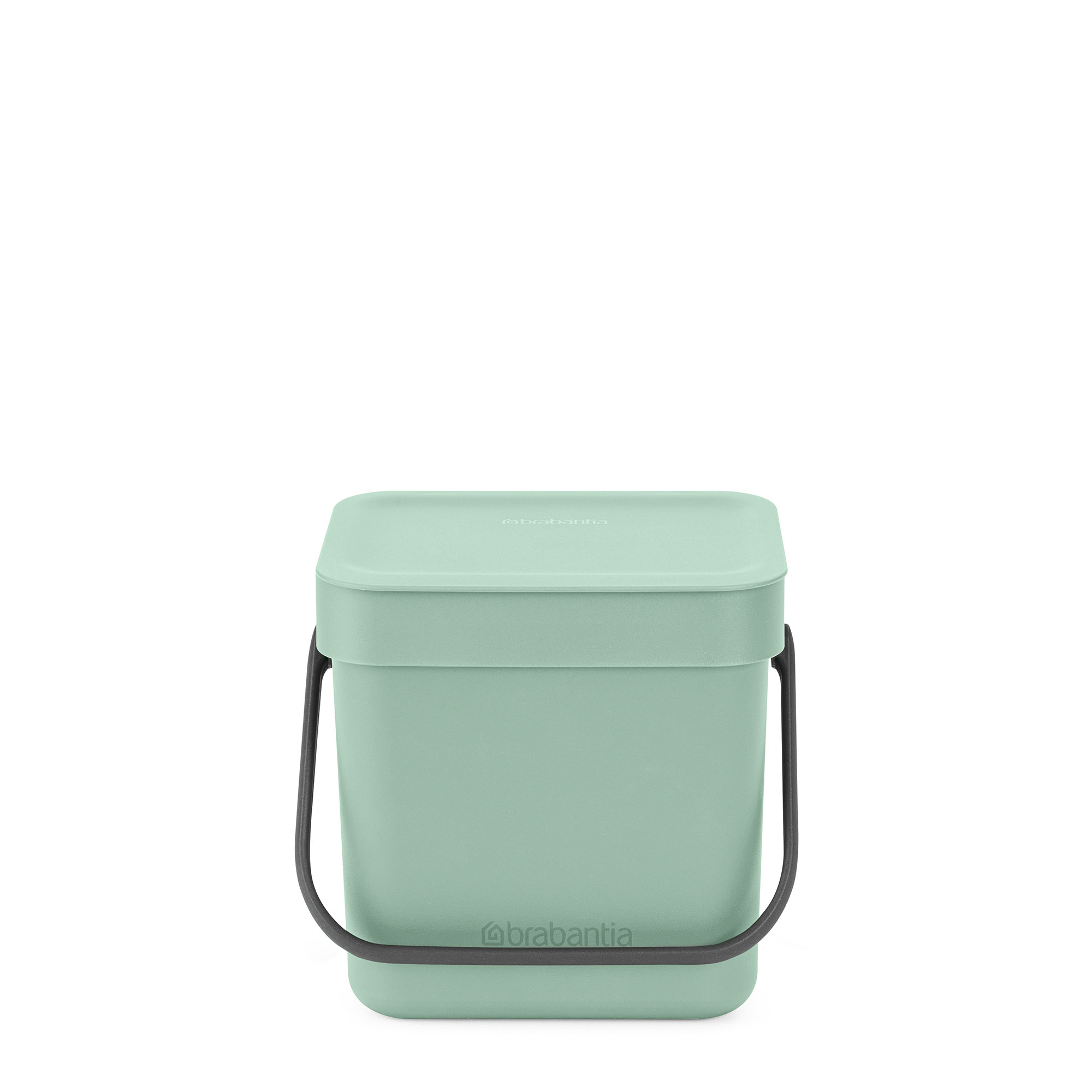 Der kleine praktische Abfalleimer für kompostierbare Abfälle. Nicht zu gross, um auf der Arbeitsplatte einen Platz zu finden.