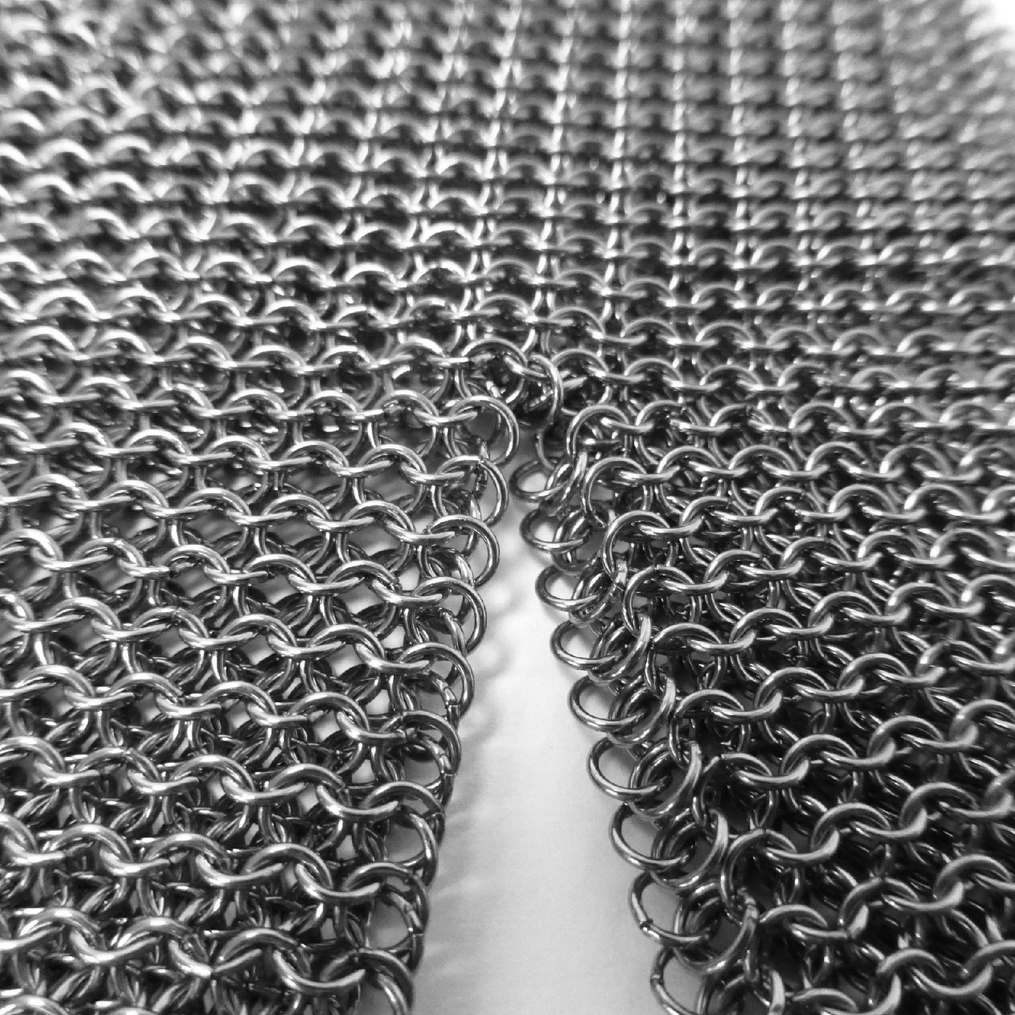 Die aus aus einem Edelstahl-Ringgeflecht gefertigten Schutzhandschuhe werden im Profibereich bei Arbeiten mit Messern als Stechschutz eingesetz.