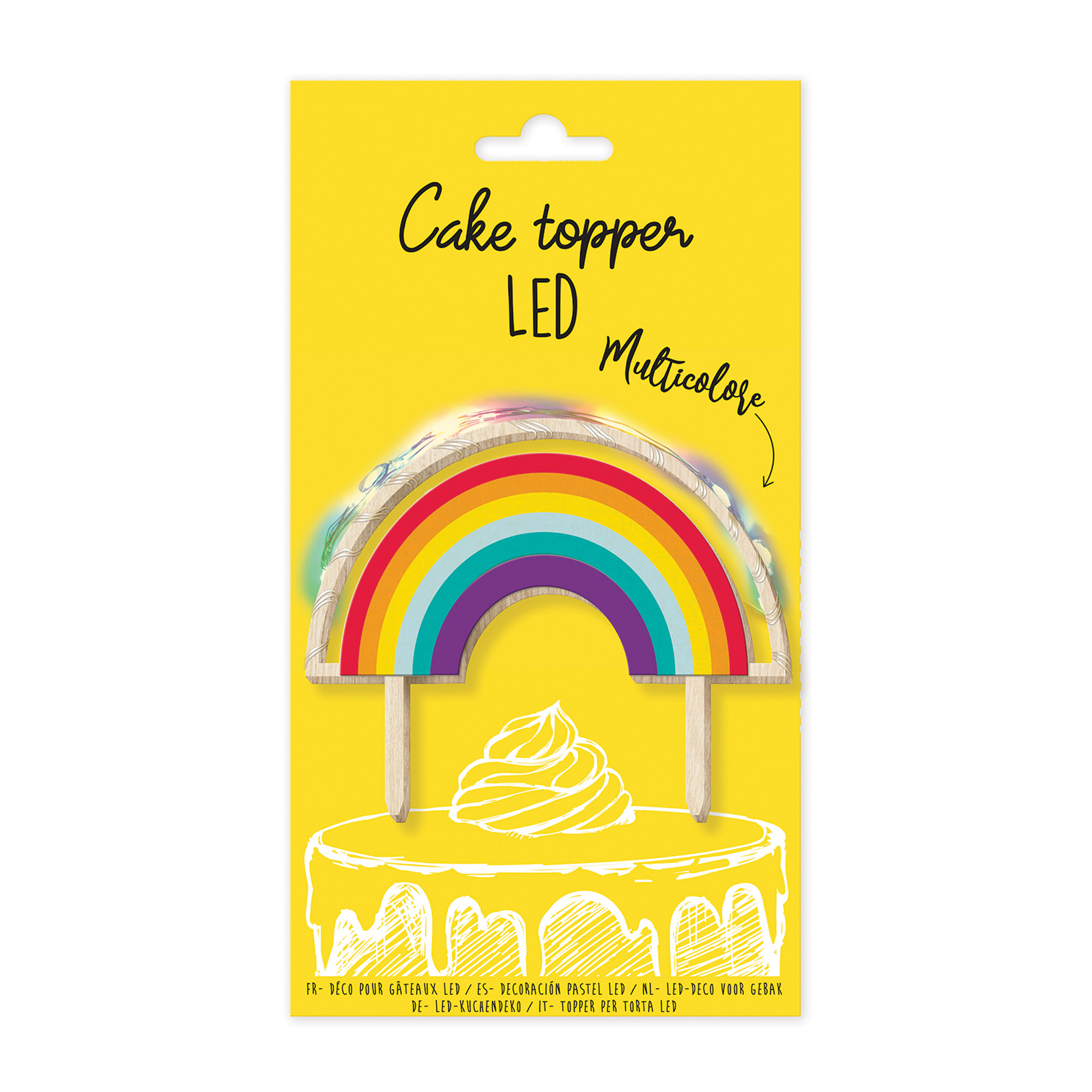 Schaffen Sie ein magisches Erlebnis mit diesem hübschen, LED beleuchteten Tortentopper in der Form eines Regenbogens. Der Topper wird die nächste Geburtstagfeier zu einem magischen funkelnden Moment machen.