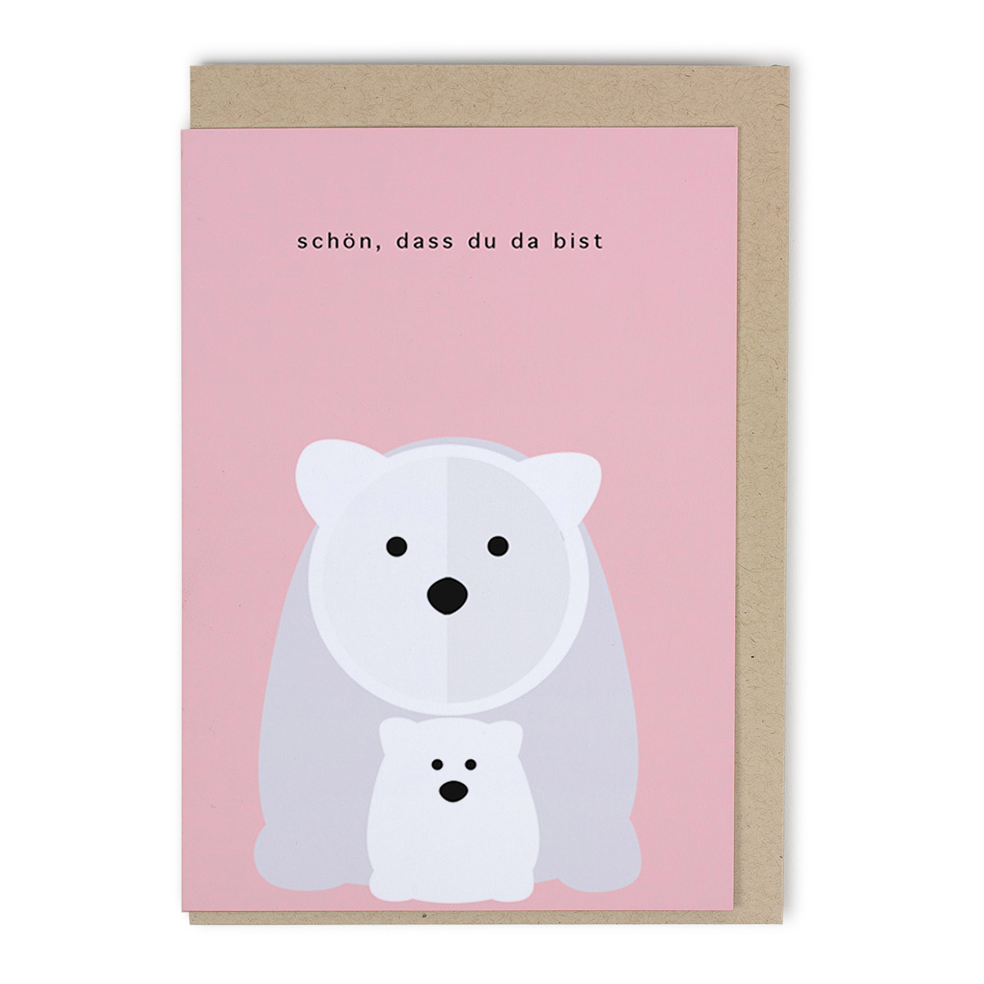 Die Klappkarte mit Eisbärin und Eisbärkind ist eine schöne Glückwunschkarte für frischgebackene Eltern. Der Kopf des Eisbärenmotivs lässt sich auf der Vorderseite dreidimensional nach aussen aufklappen.