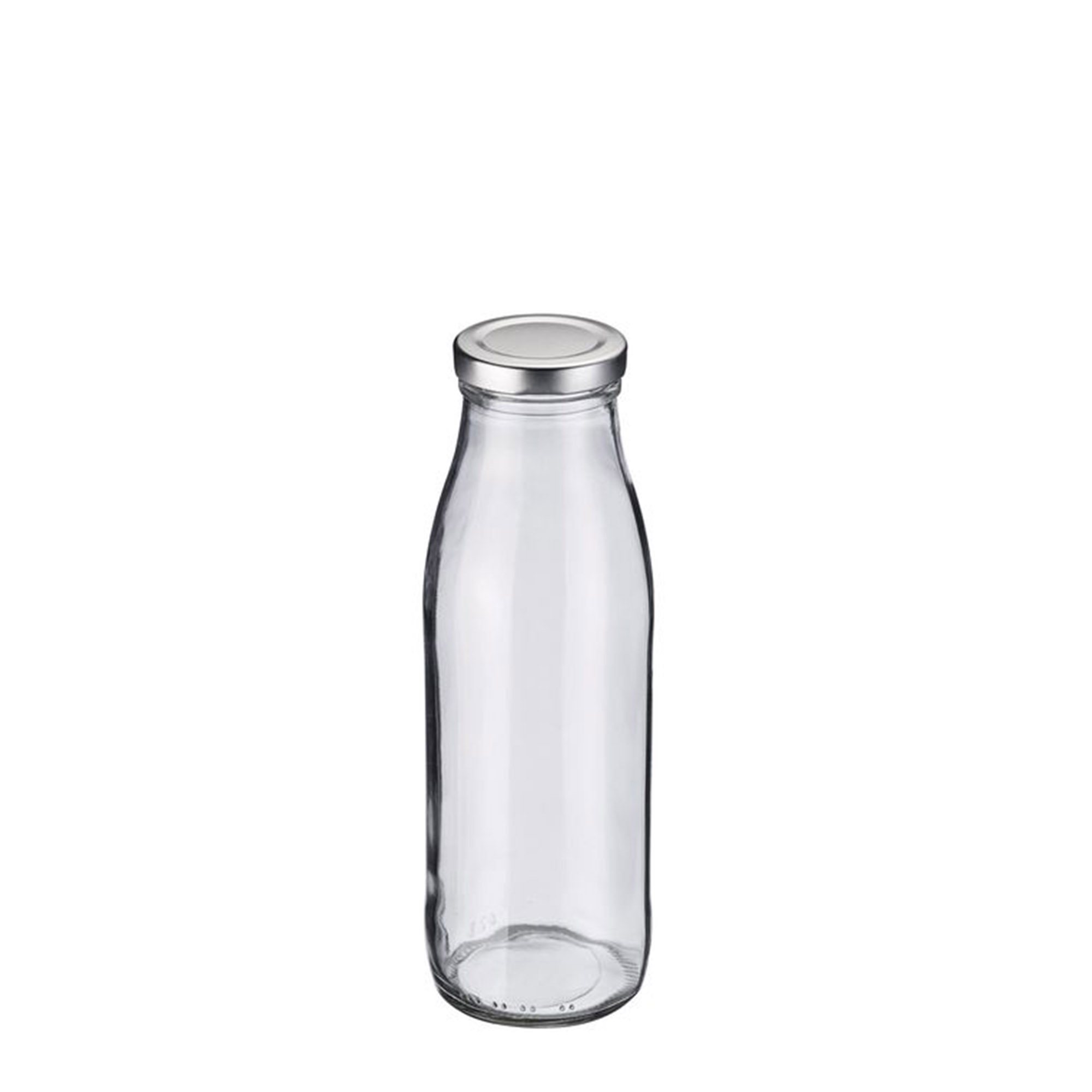 Die Glasflasche eignet sich perfekt um frische Milch, Saft oder Sirup abzufüllen.