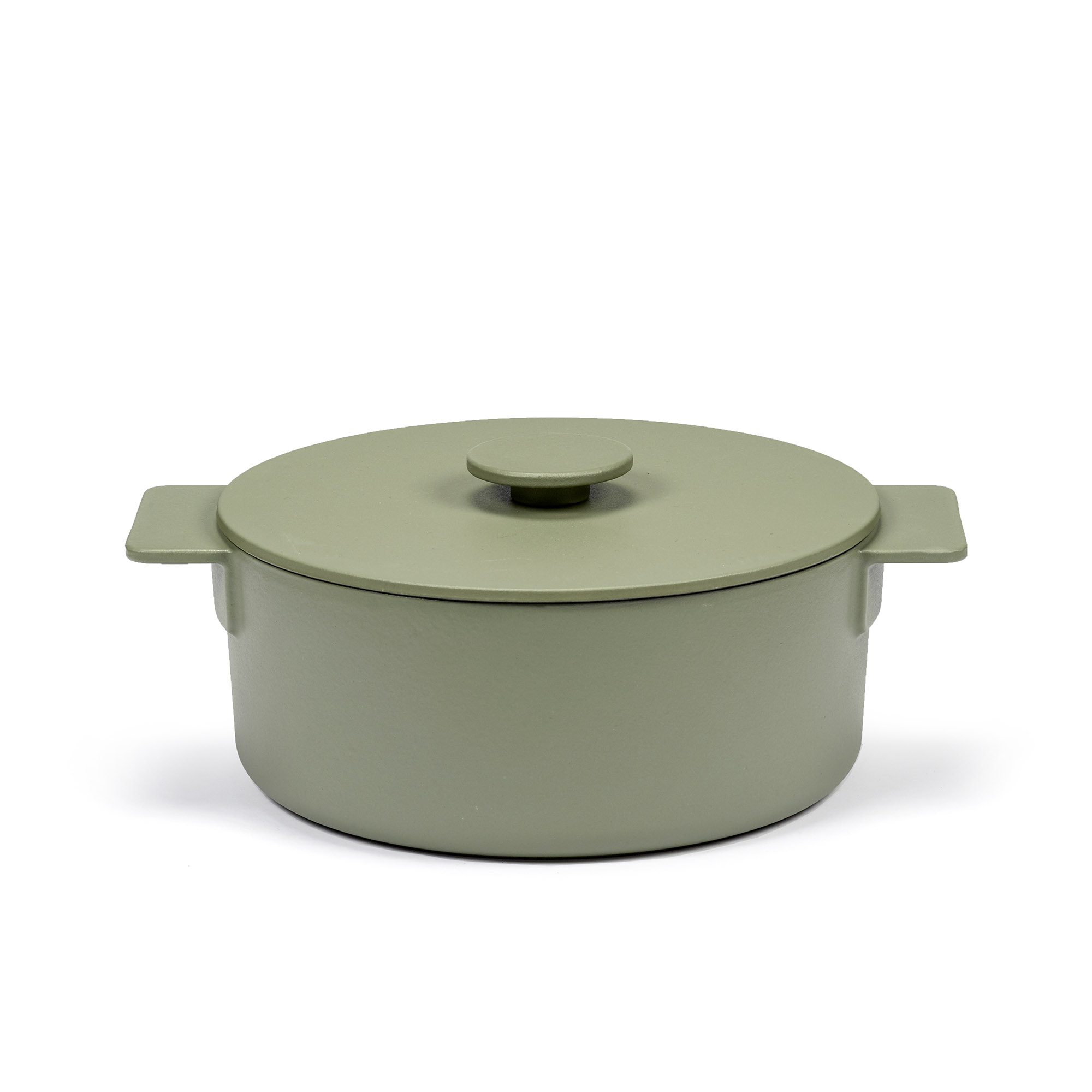 Der niederländische Sternekoch Sergio Herman hat sich mit Serax zusammengetan – herausgekommen ist das Kochgeschirr „Surface“. Der gusseiserne Kochtopf hat ein schlichtes Design und eigen sich für jede Wärmequelle. Aber auch auf dem Tisch macht er eine gute Form. Die Innenseite ist glasiert und die Aussenseiten hat eine raue und unpolierte Optik.