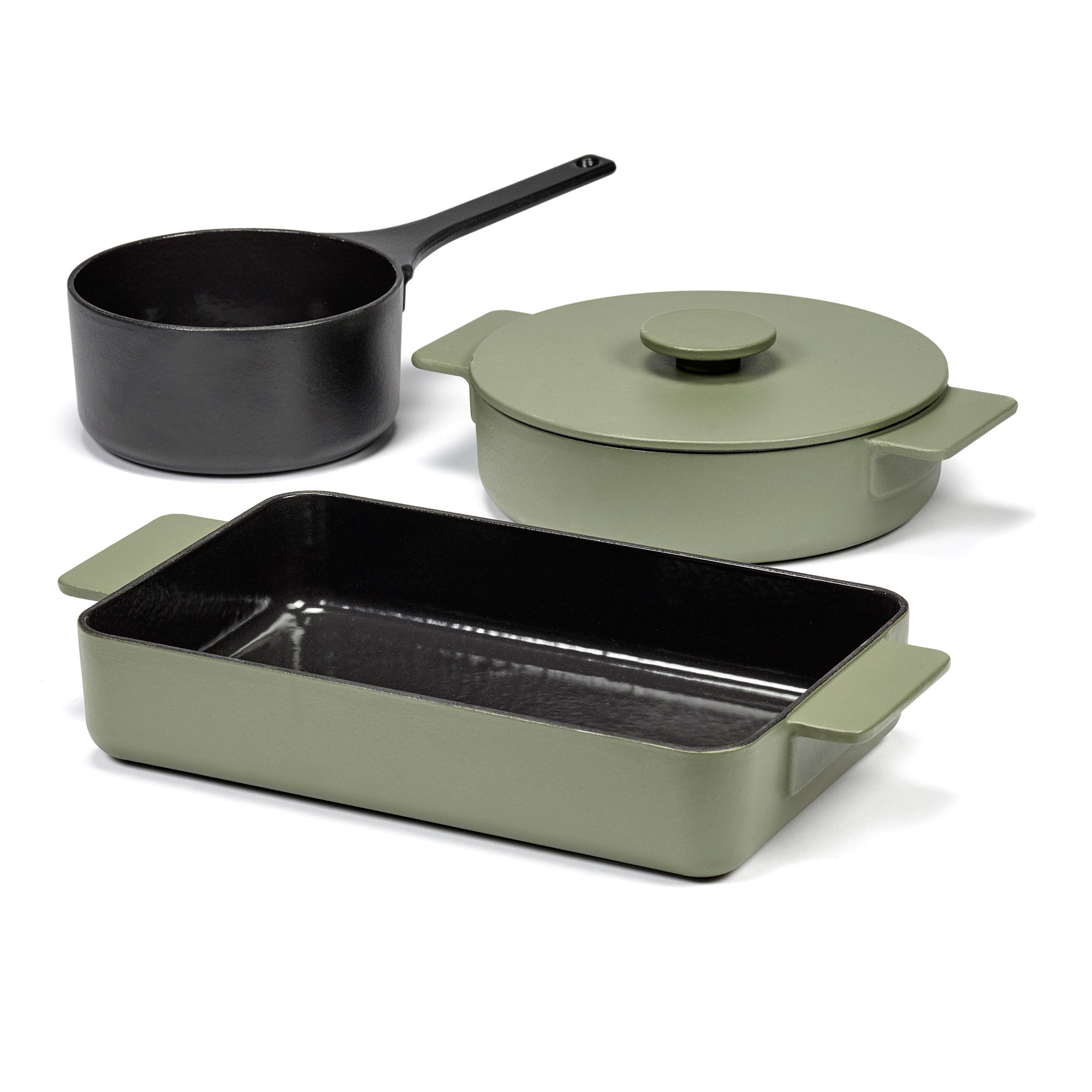 Der niederländische Sternekoch Sergio Herman hat sich mit Serax zusammengetan – herausgekommen ist das Kochgeschirr „Surface“. Der gusseiserne Kochtopf hat ein schlichtes Design und eigen sich für jede Wärmequelle. Aber auch auf dem Tisch macht er eine gute Form. Die Innenseite ist glasiert und die Aussenseiten hat eine raue und unpolierte Optik.