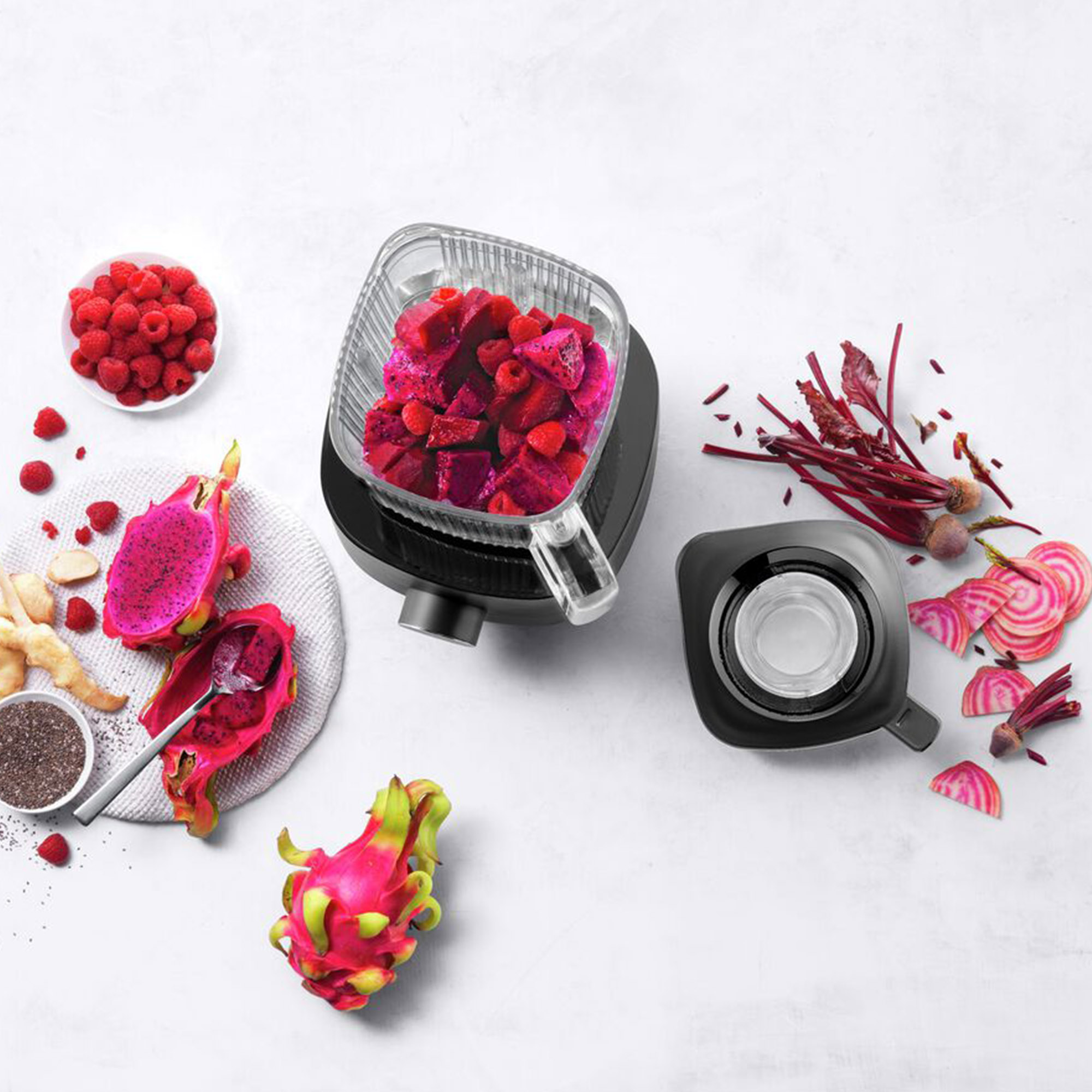 - Der 1.8 Liter-Mixbehälter aus BPA-freiem Tritan ist bruchfest, kälte- und hitzebeständig