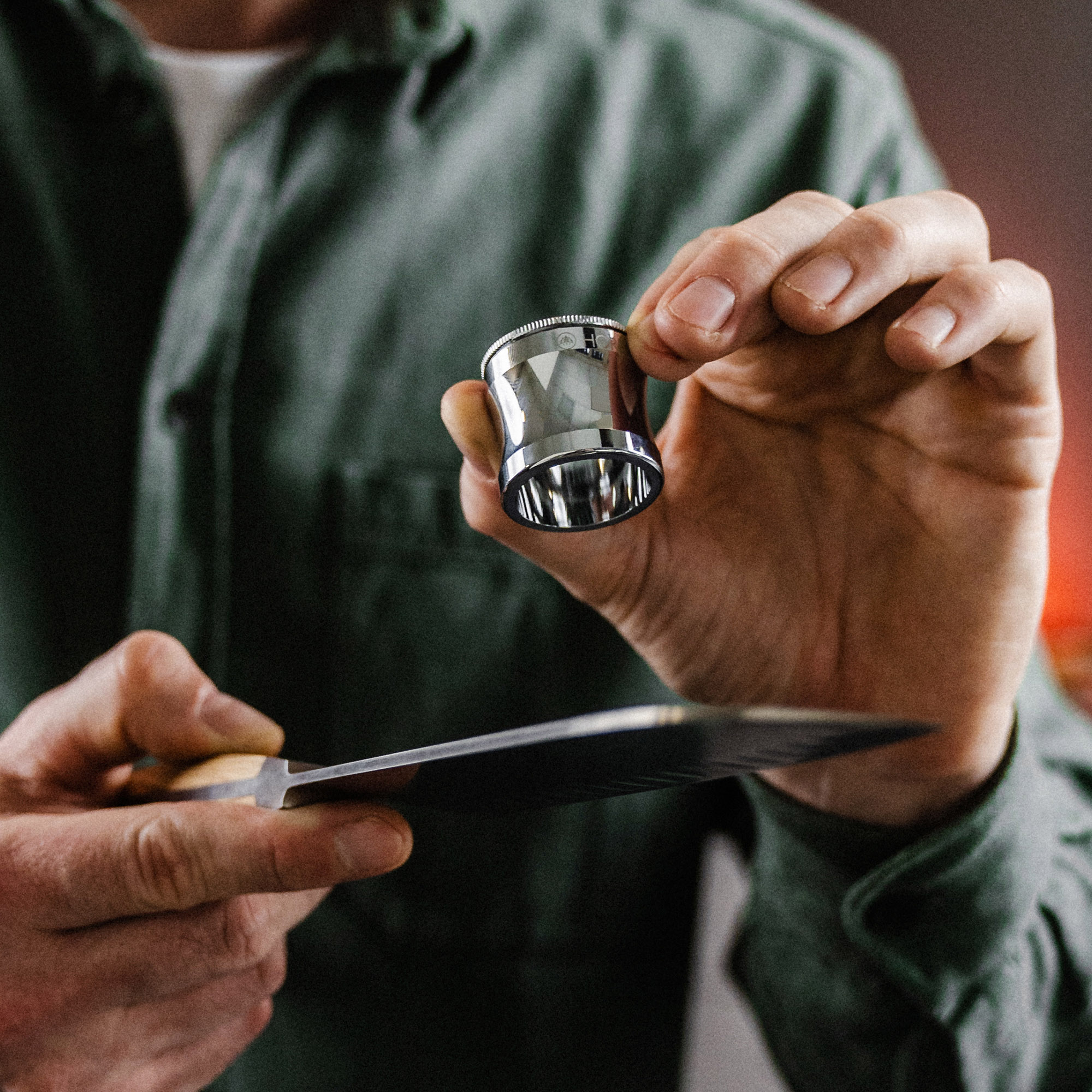 Für alle, die gerne genauer hinschauen. Damit man Schärfe nicht nur fühlen, sondern auch sehen kann, wurde die HORL-Lupe entwickelt. Die im Schwarzwald gefertigte Lupe bietet eine 3,5-fache Vergrößerung. Daraus ergibt sich eine Detailtiefe, die für die Untersuchung des Schliffbildes ideal ist. So lässt sich leichter beurteilen, ob noch ein Grat vorhanden ist oder die optimale Schärfe erreicht wurde.