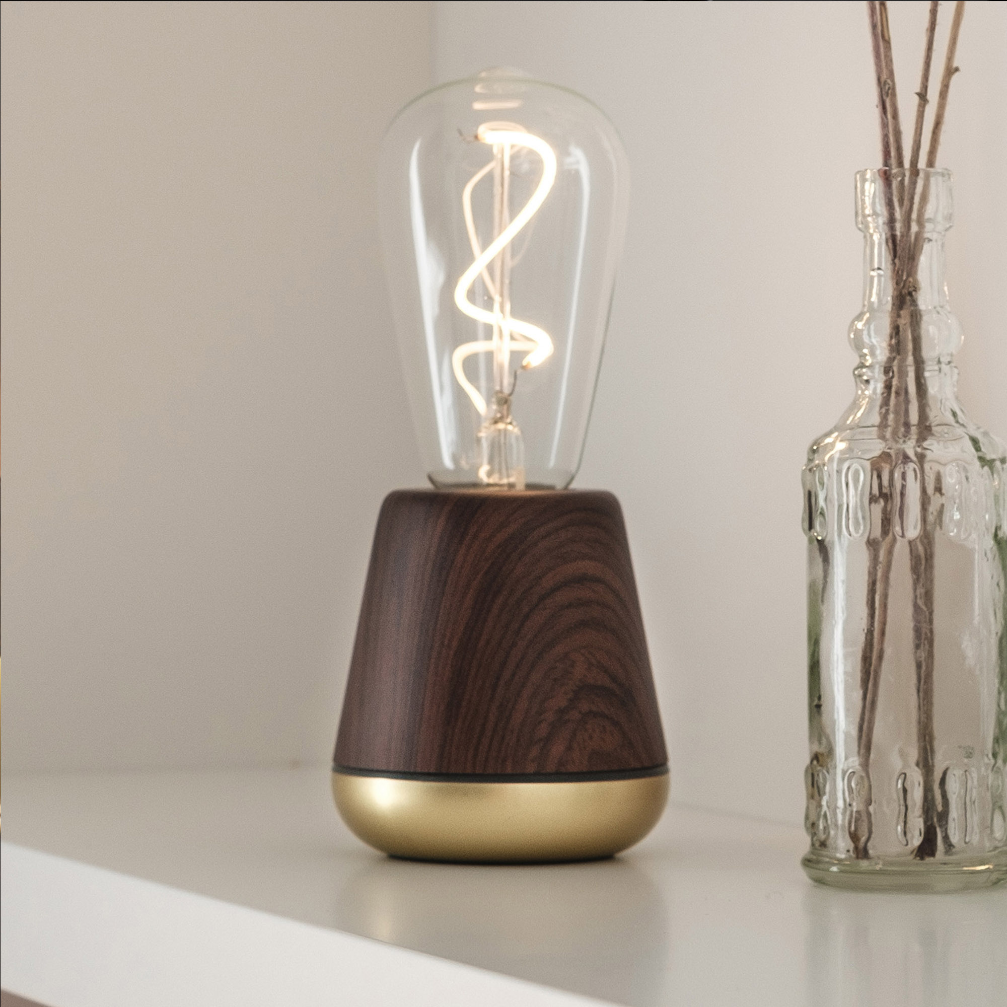 Die kabellose Tischleuchte spendet nicht nur Licht, sondern ist ein richtiger Hingucker auf dem Tisch, Regal, Nachttisch oder in der Lieblingsecke. Kompakt und portabel, lässt sich die Leuchte überall platzieren und die drei Dimmstufen sorgen für die passende Stimmung. Der integrierte Akku lässt sich mit dem mitgelieferten USB-Kabel aufladen.
