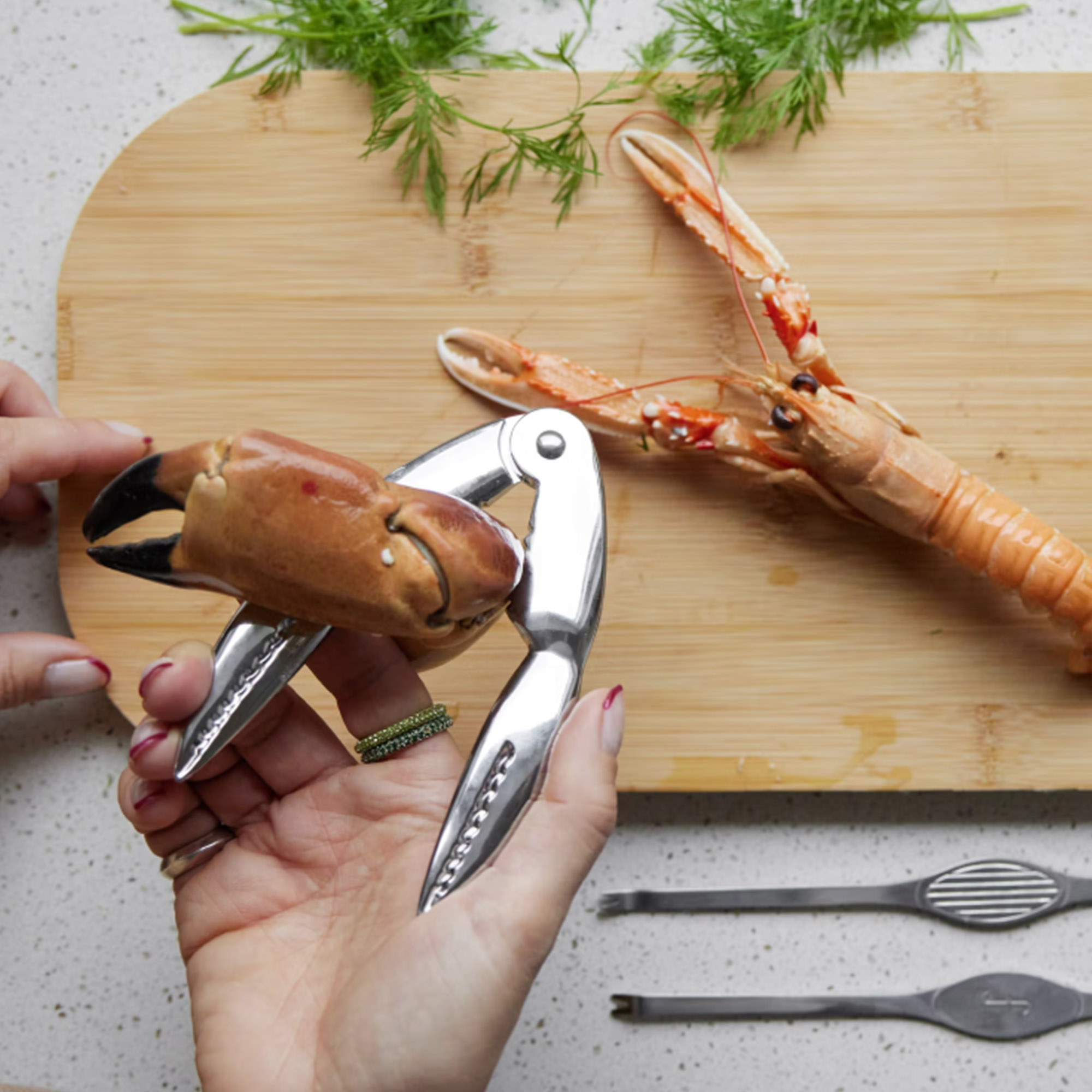 Das köstliche Fleisch des Hummers versteckt sich in den Beinen, Scheren und dem Schwanz – und um es zu geniessen, benötigt man spezielles Besteck. Die Hummerzange ist ideal, um die harte Schale von Hummern, Langusten und Krebsen mühelos zu knacken. Anschliessend hilft ihnen eine Hummergabel dabei, das zarte Fleisch bequem und ohne Aufwand herauszuziehen.
