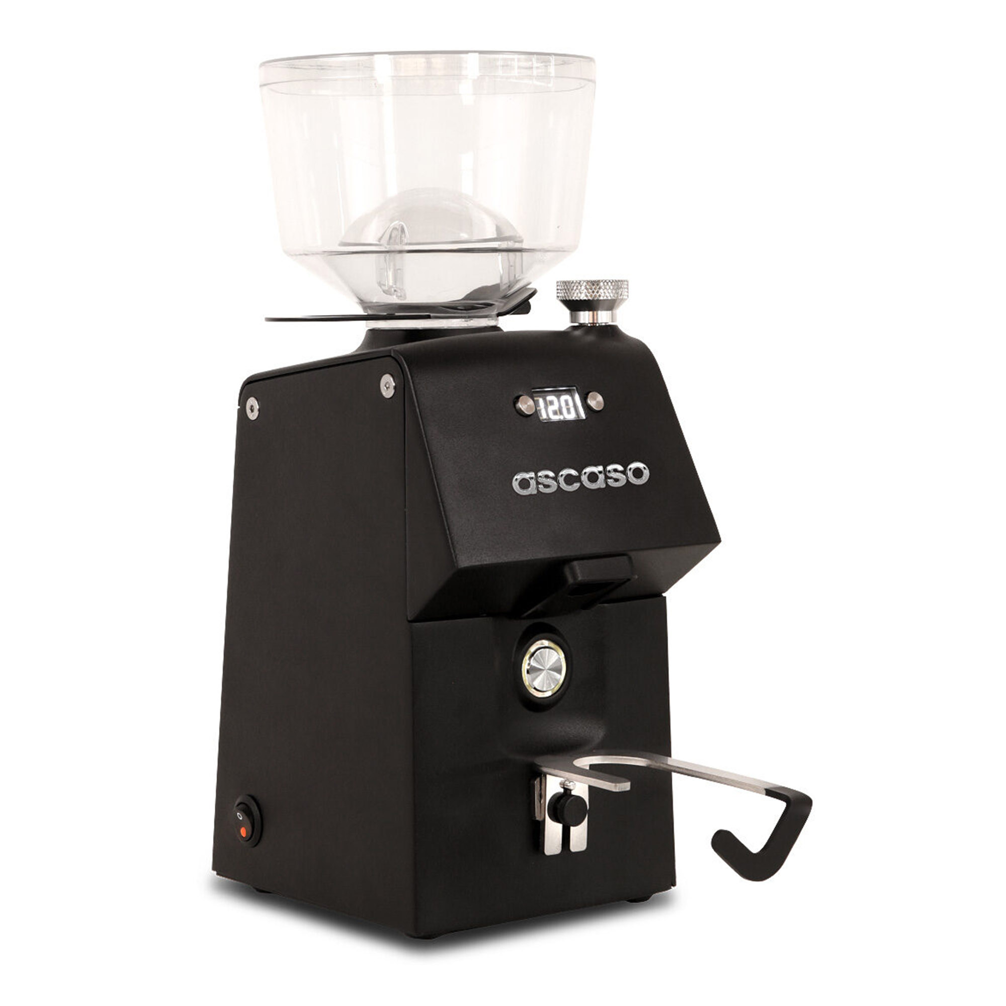 Das Display zeigt die Mahldauer an. Die Mühle kann 2,3 - 2,5 g Kaffeemehl pro Sekunde mahlen und das bei einer beeindruckenden Geschwindigkeit von 1650 U/min.