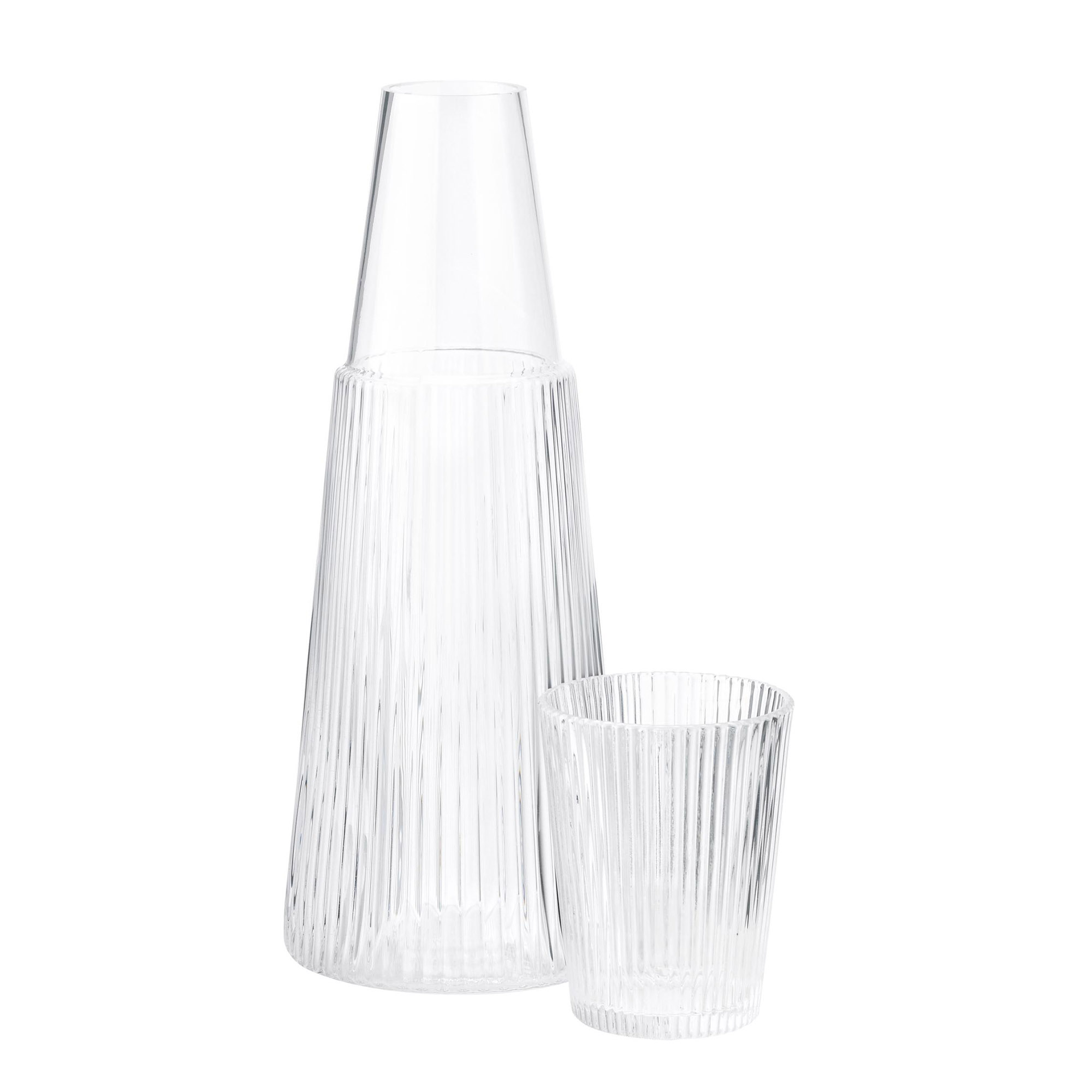 Die Karaffe Pilastro wurde von Francis Cayouette für Stelton entworfen. Die fein geriffelte Oberfläche verleiht dem Glas ein minimalistisches und zugleich raffiniertes Aussehen. Die hochwertige Karaffe fasst einen Liter Flüssigkeit und wird mit einem Glas geliefert, das auch als Deckel verwendet werden kann. Die Karaffe eignet sich sowohl für Heissgetränke wie Tee als auch für Kaltgetränke wie Limonade oder Sodawasser.