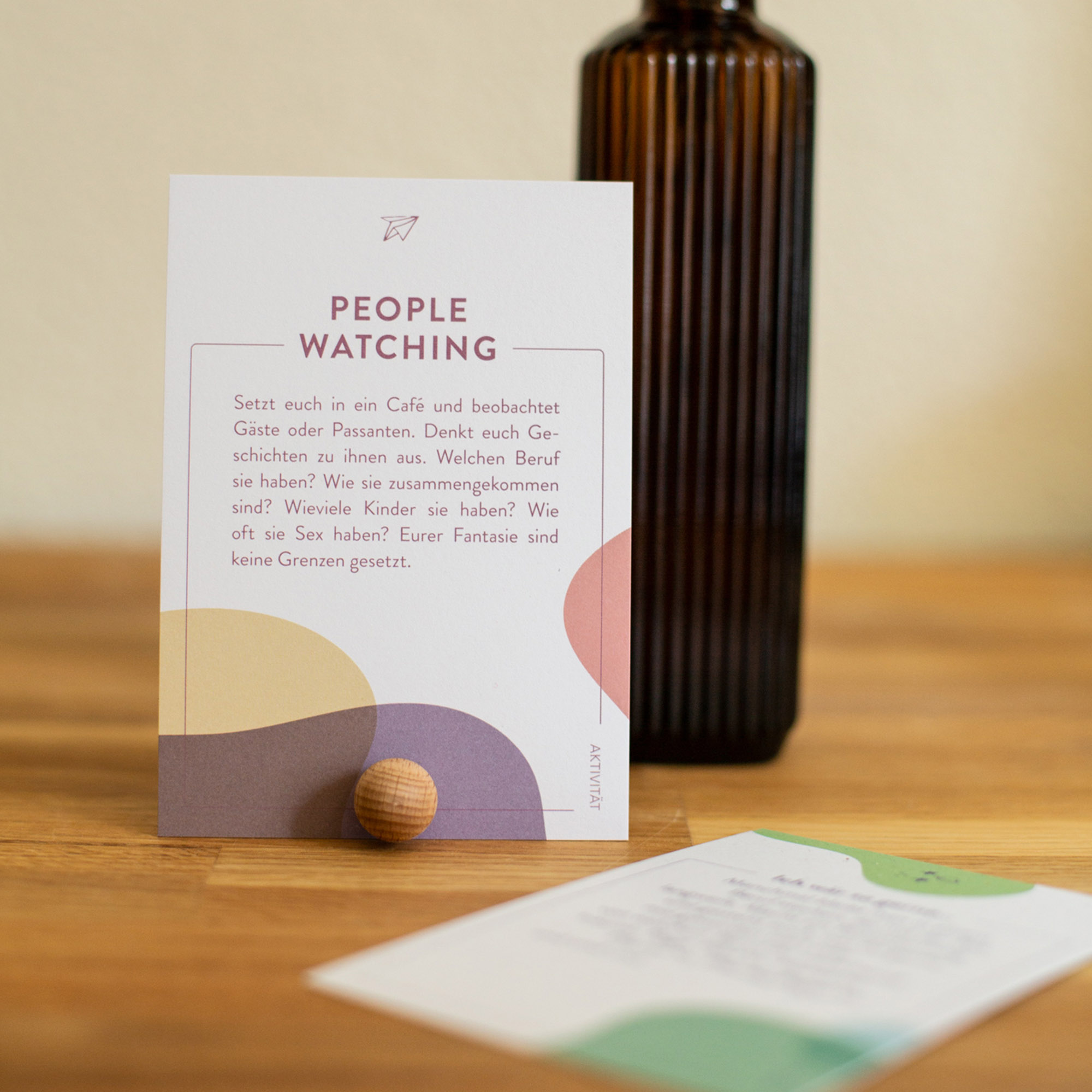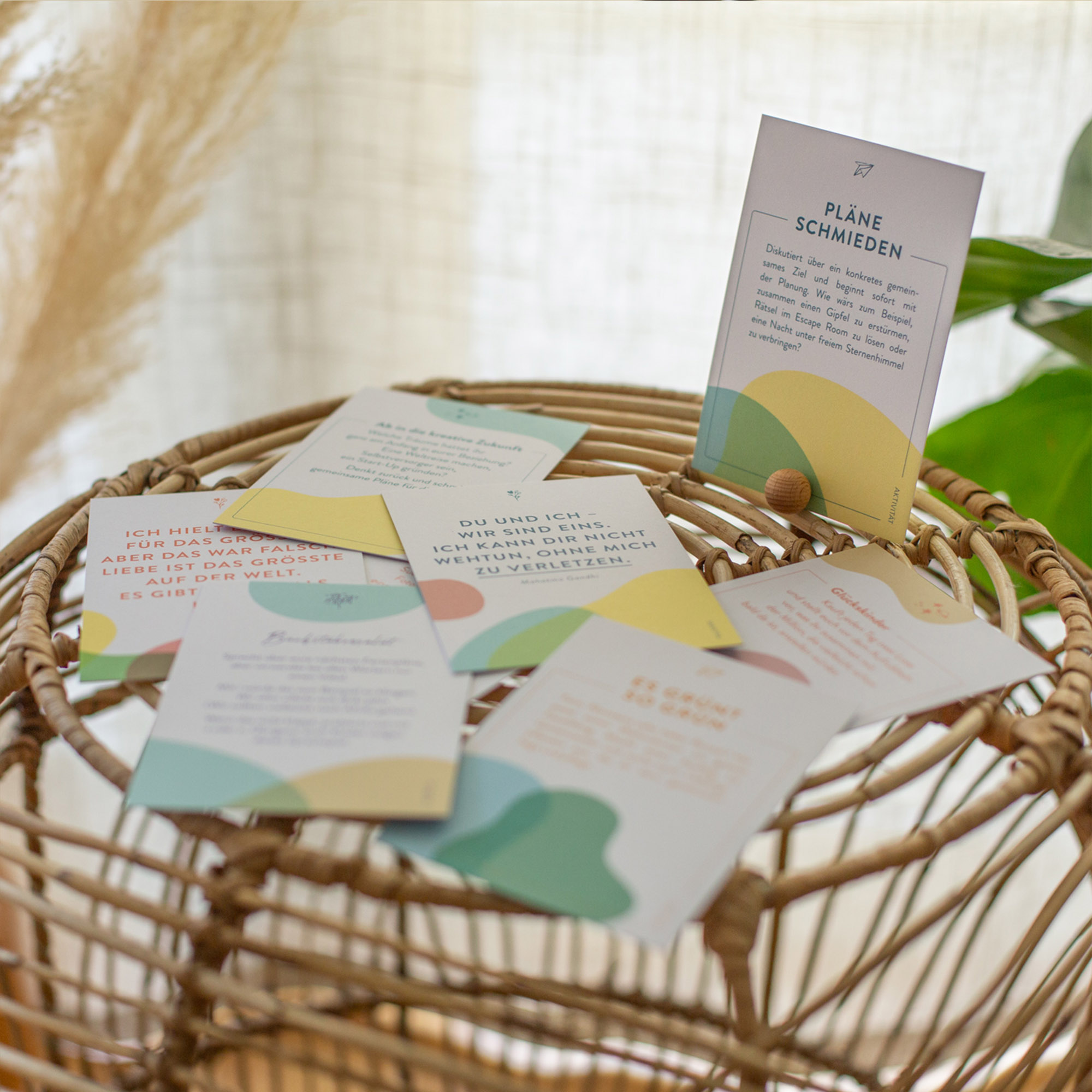 Diese 52 Karten bieten jedem Paar wöchentlich einen kreativen Beziehungsinput. Sei es eine witzige und ungewohnte Aktivität, ein achtsamer Umgang, unerwartete Fragen oder ein schlichtes Mantra. Jeweils anfangs Woche sucht man sich eine Karte aus, stellt sie mit dem mitgelieferten Kartenhalter auf und nimmt sich so auch in hektischen Phasen bewusst Zeit zu Zweit.