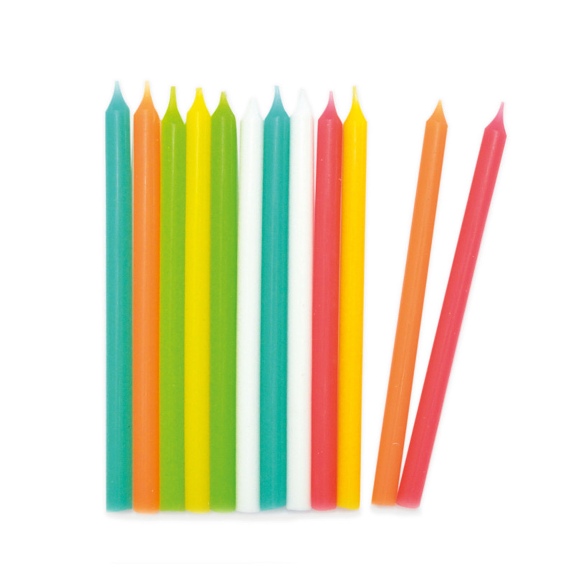 Die bunten Kerzen verwandeln jeden Kuchen in eine farbenfrohe und dekorative Geburtstagstorte.