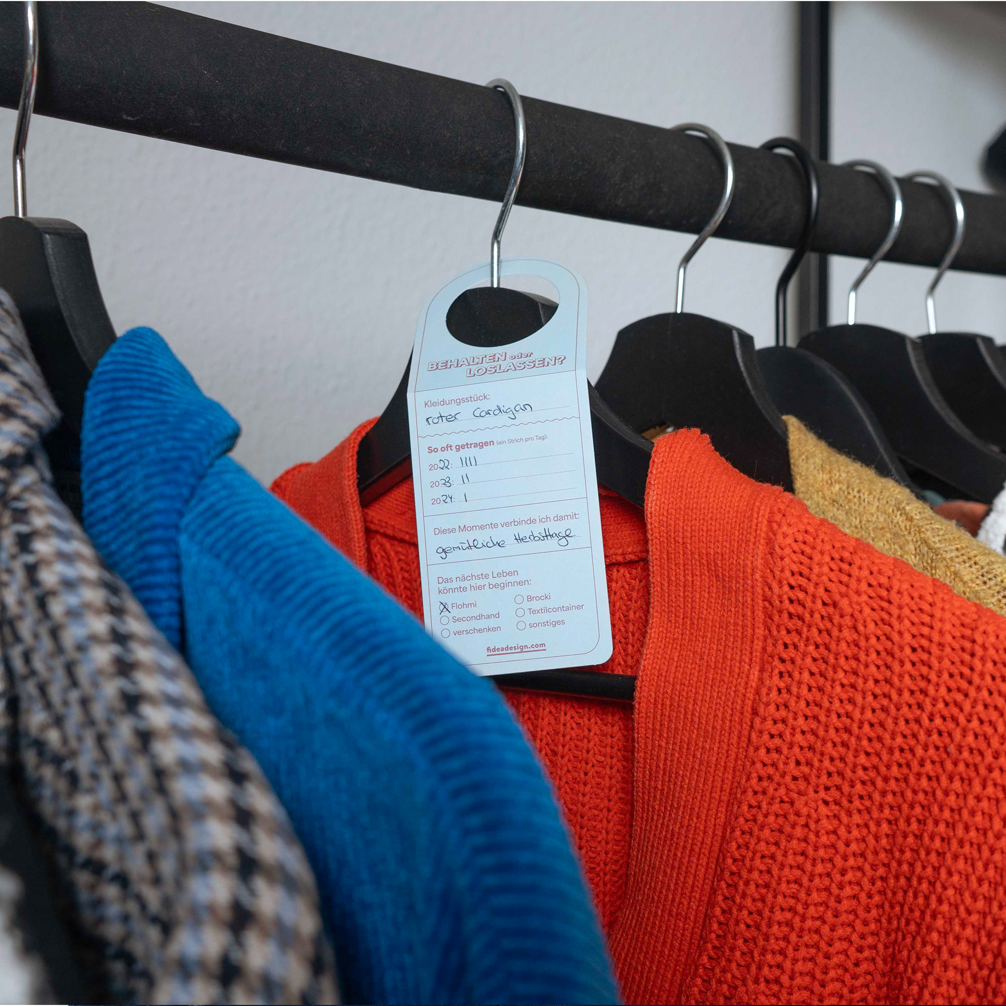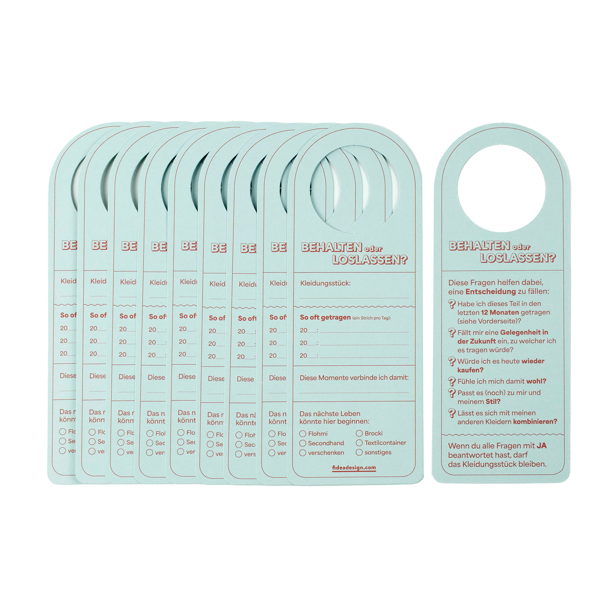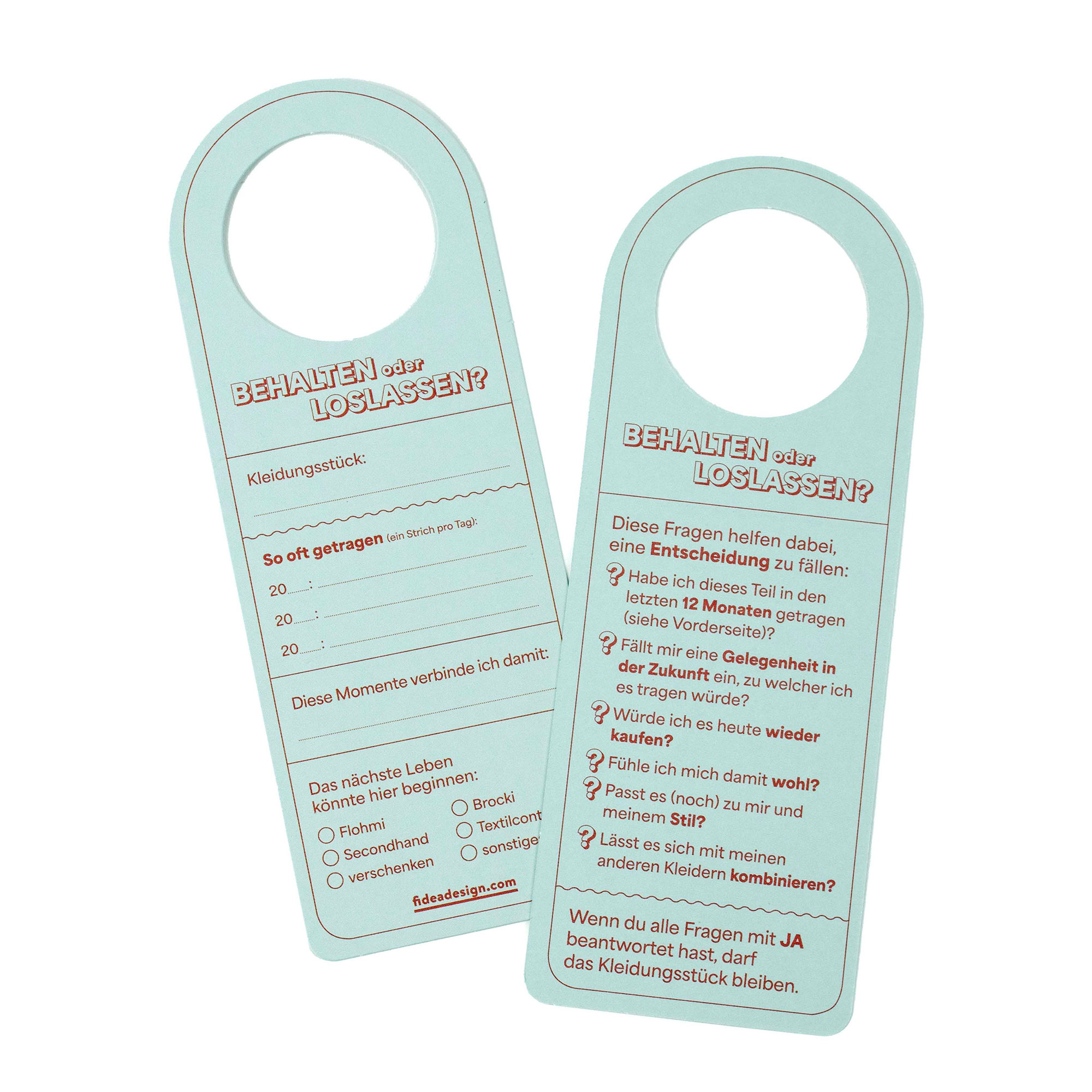 Die Anhänger Kleider-Entscheider unterstützen dich dabei, deinen Schrank gründlich und ehrlich zu durchforsten und Kleider ganz ohne Reue loszulassen, weiterzugeben oder zu verkaufen. Für mehr Ordnung und bewusstes Entscheiden.