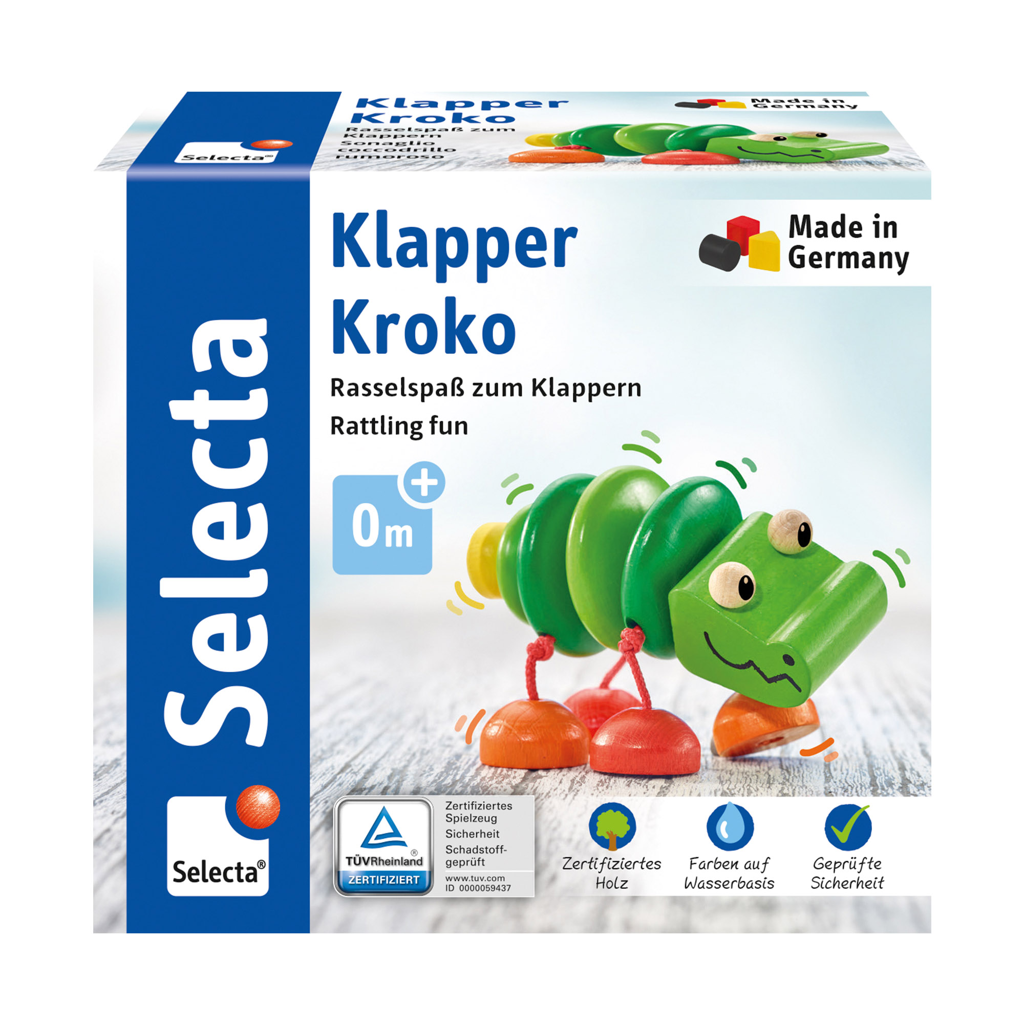 Das lustige Klapper-Kroko zeigt sich mit einem freundlichen Gesicht und lädt zum Spielen, Greifen und Entdecken ein. Mit seinen Baumelbeinen und unterschiedlich grossen Scheiben begeistert er kleine Tierfreunde mit den wundervollen Klappergeräuschen.