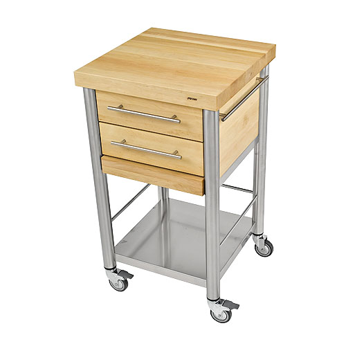 Mit schlichtem, zeitgemässem Design und kompromissloser Wahl der Materialien vereint er Ästhetik und Funktionalität. Die Metallteile sind aus gebürstetem Edelstahl und die Arbeitsfläche und die Schubladen aus Weissbuche.