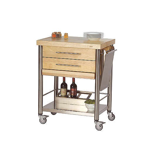 Mit schlichtem, zeitgemässem Design und kompromissloser Wahl der Materialien vereint er Ästhetik und Funktionalität. Die Metallteile sind aus gebürstetem Edelstahl und die Arbeitsfläche und die Schubladen aus Weissbuche.