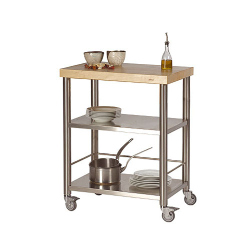 gebürstetem Edelstahl und die Arbeitsplatte aus Weissbuche.