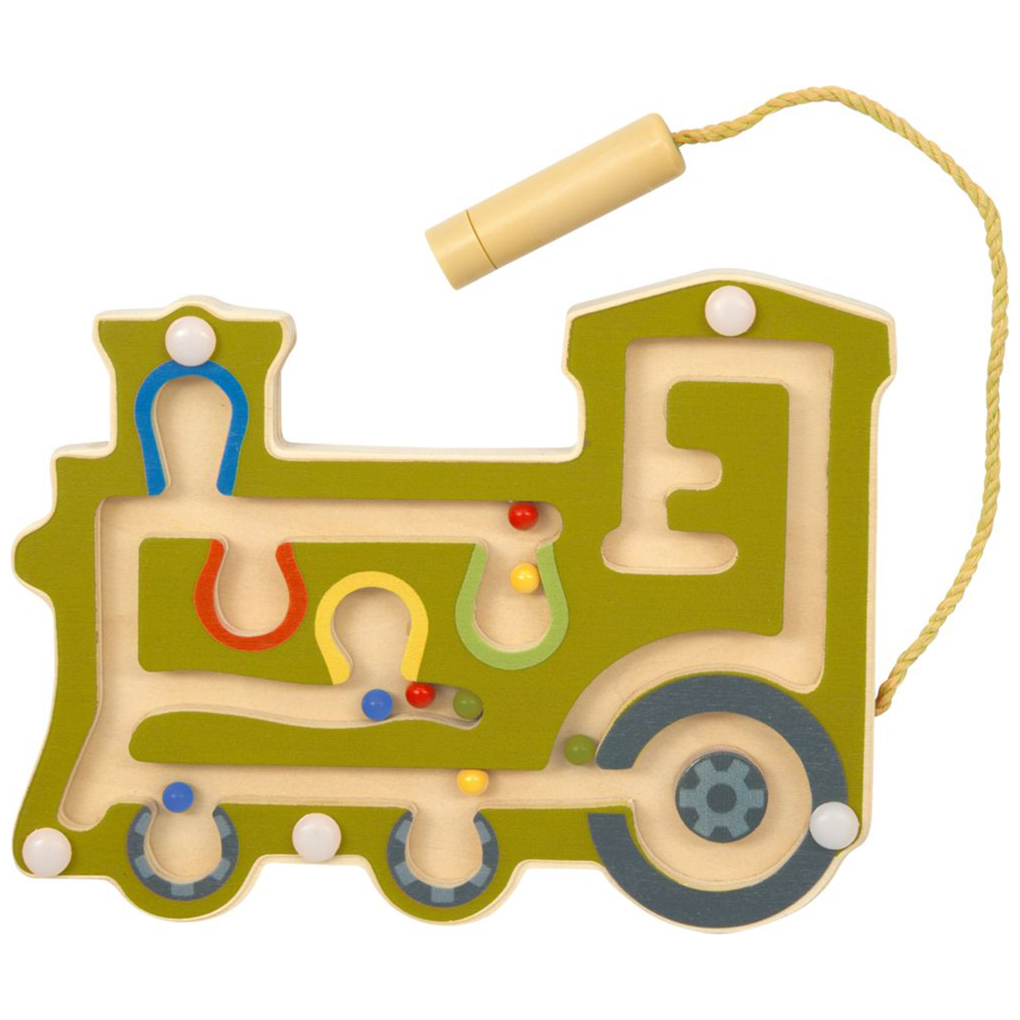 Mit dem handlichen Magnetstift führen Kinder die bunten Kugeln durch spannende Wege – mal im Kreis, mal durch enge Gänge.