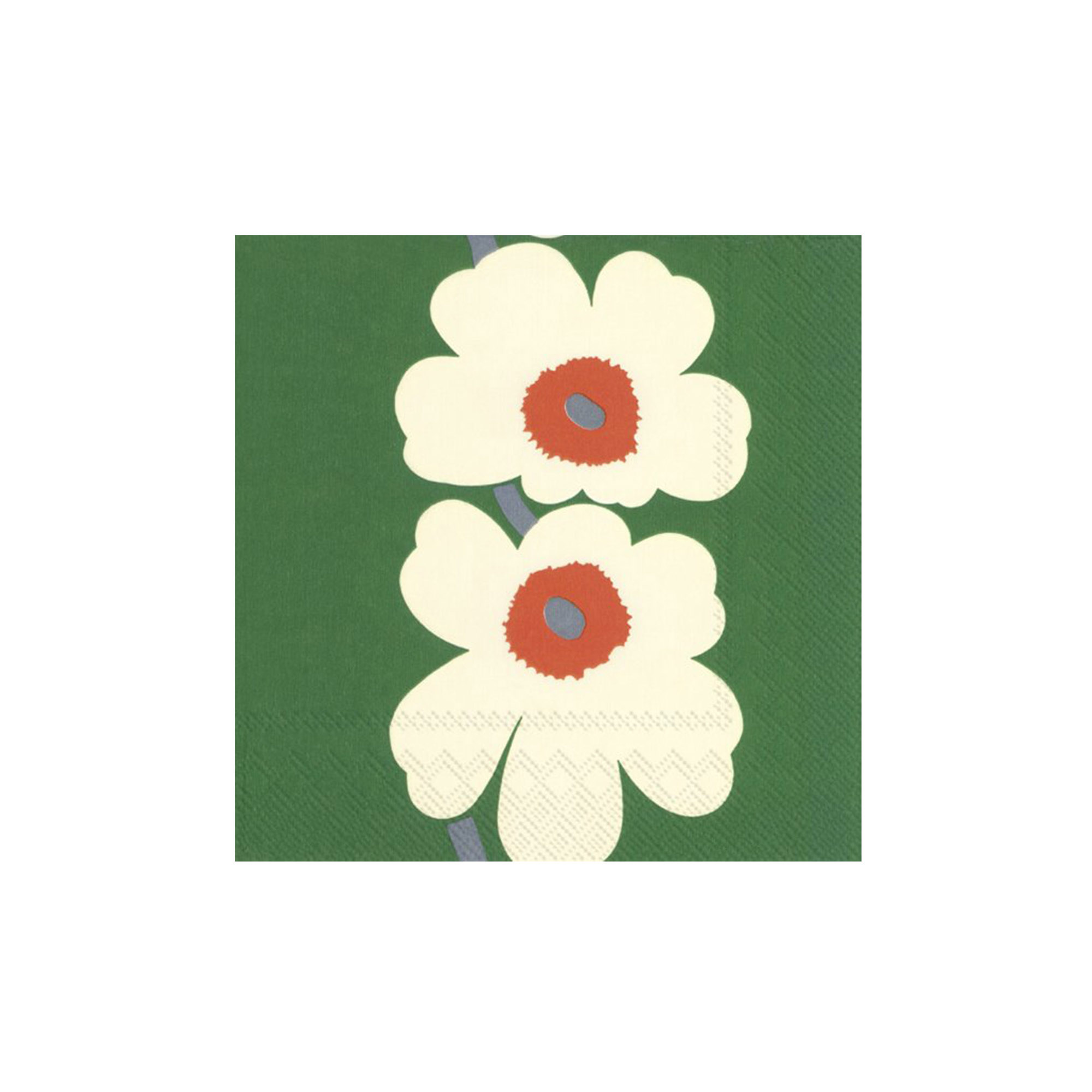 Papierserviette mit dem Motiv "Unikko" von Marimekko. Diese Serviette wurde zum 60-jährigen Jubiläum des Musters produziert.