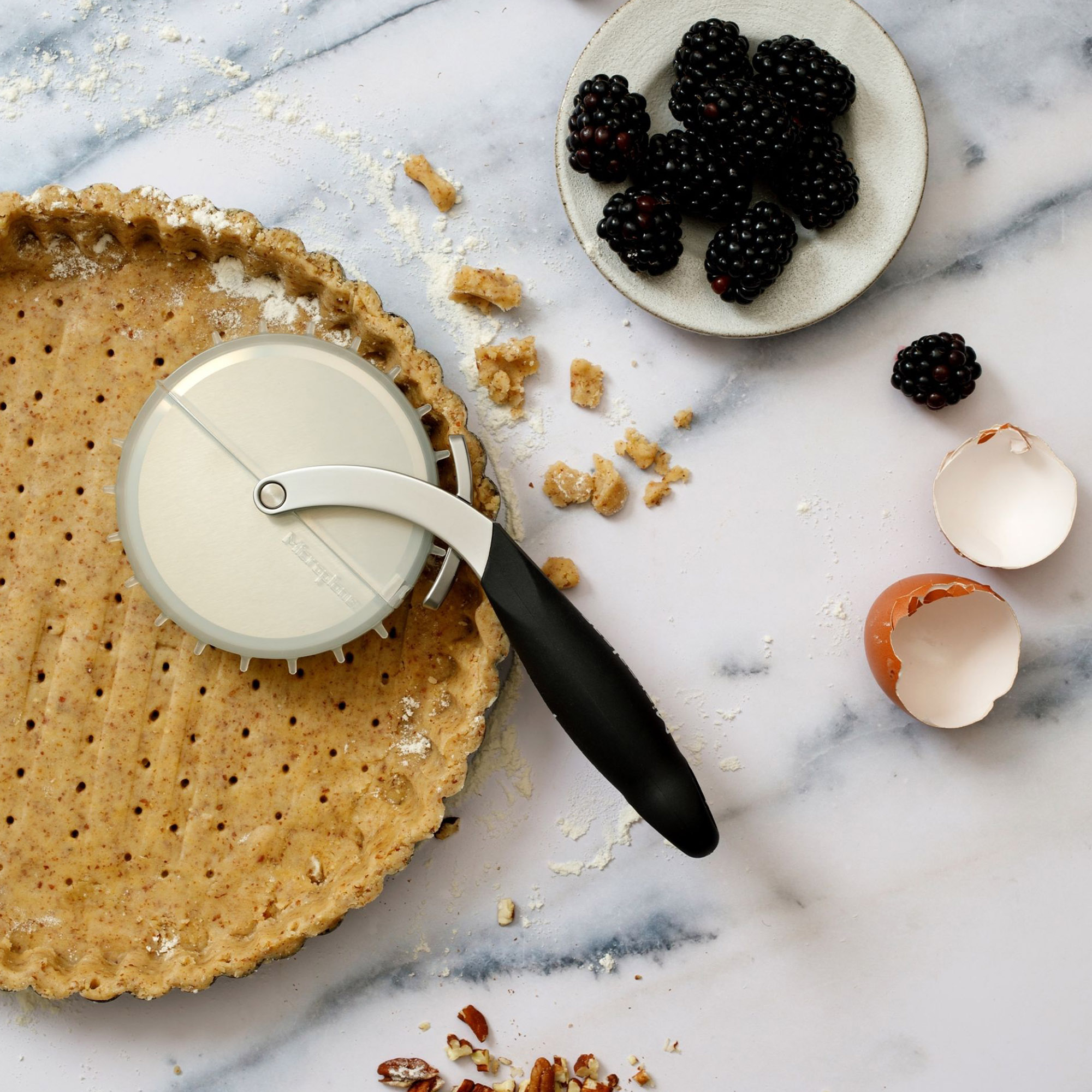 Ein besonderes Extra: Der mitgelieferte Klingenschutz kann zusätzlich als praktisches Werkzeug zum Pikieren von Kuchen- oder Wähenteig verwendet werden – ideal für gleichmäßiges Backen und perfekte Ergebnisse.