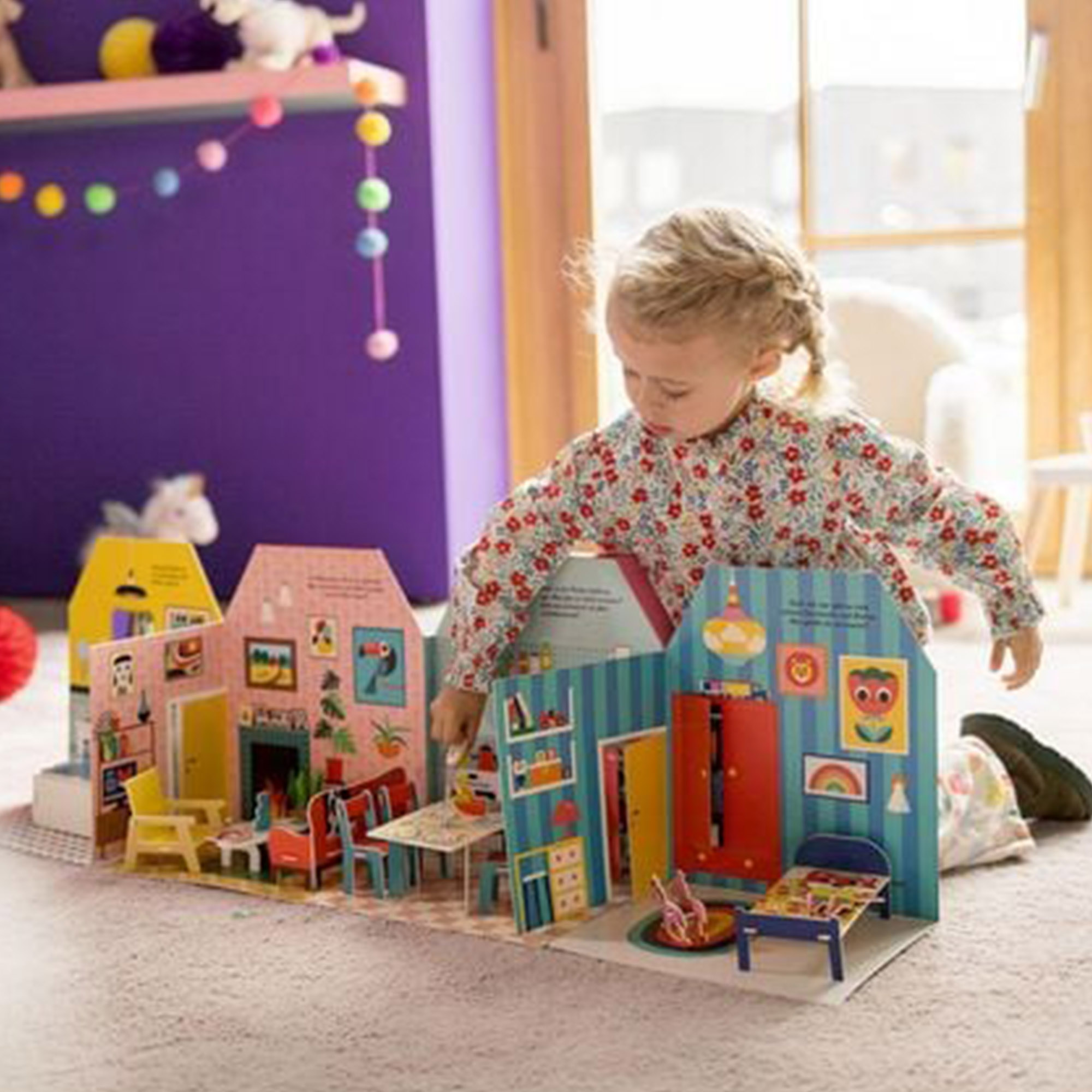 Spielbuch trifft Puppenhaus: Dieses besondere Pappbilderbuch verwandelt sich im Handumdrehen in ein farbenfrohes Puppenhaus.