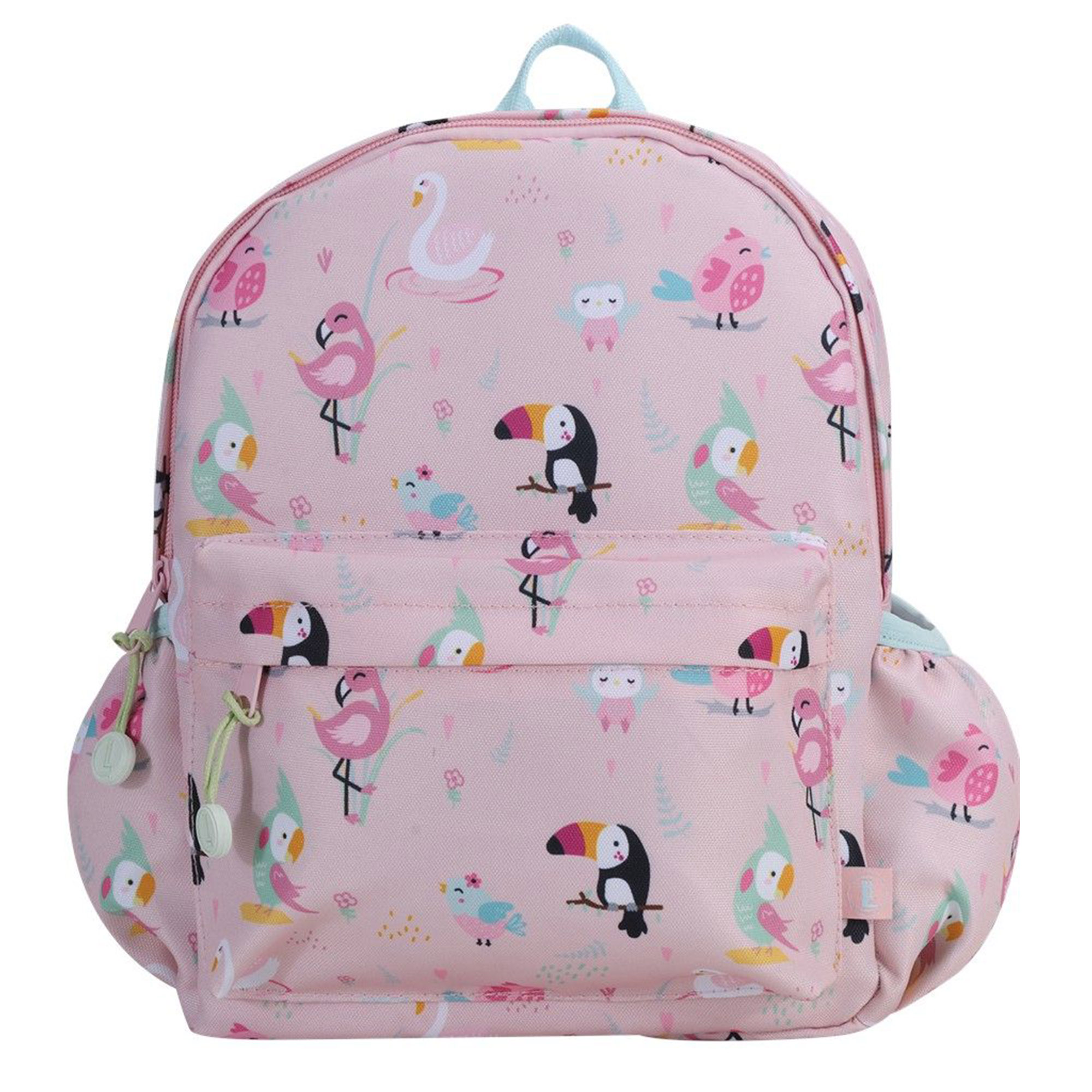 Der Kinderrucksack mit Abbildungen von verschieden bunten Vögel ist der ideale Begleiter für den Kindergarten, den Spielplatz oder den nächsten Familienausflug. Er wird aus recyceltem RPET-600D-Polyester gefertigt, das nicht nur besonders robust und langlebig ist, sondern auch wasserabweisend – so bleiben die Dinge Ihres Kindes bei jedem Wetter sicher verstaut.