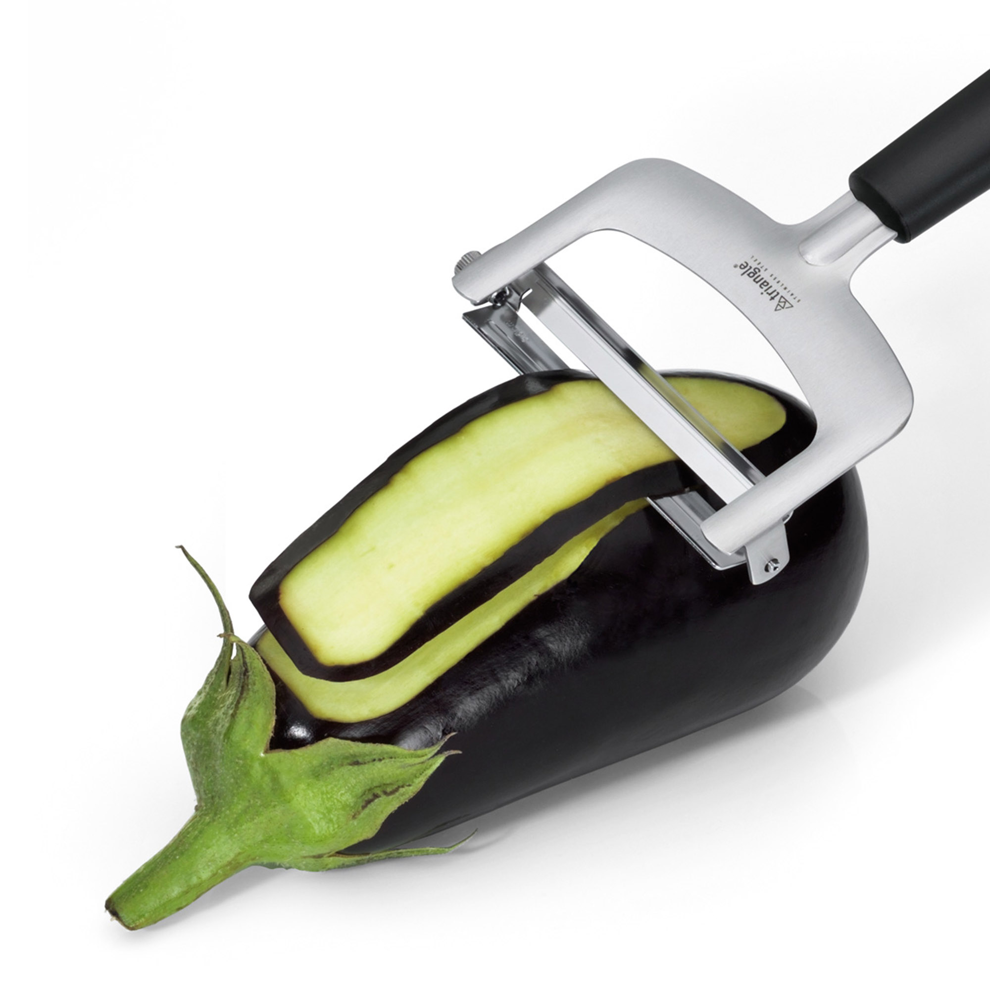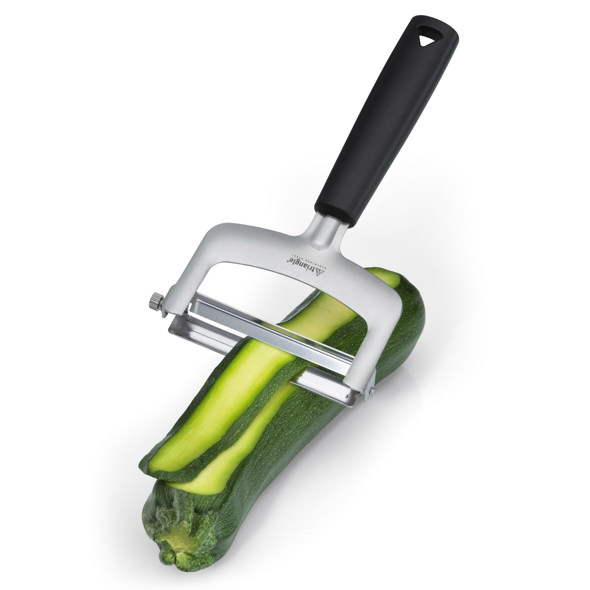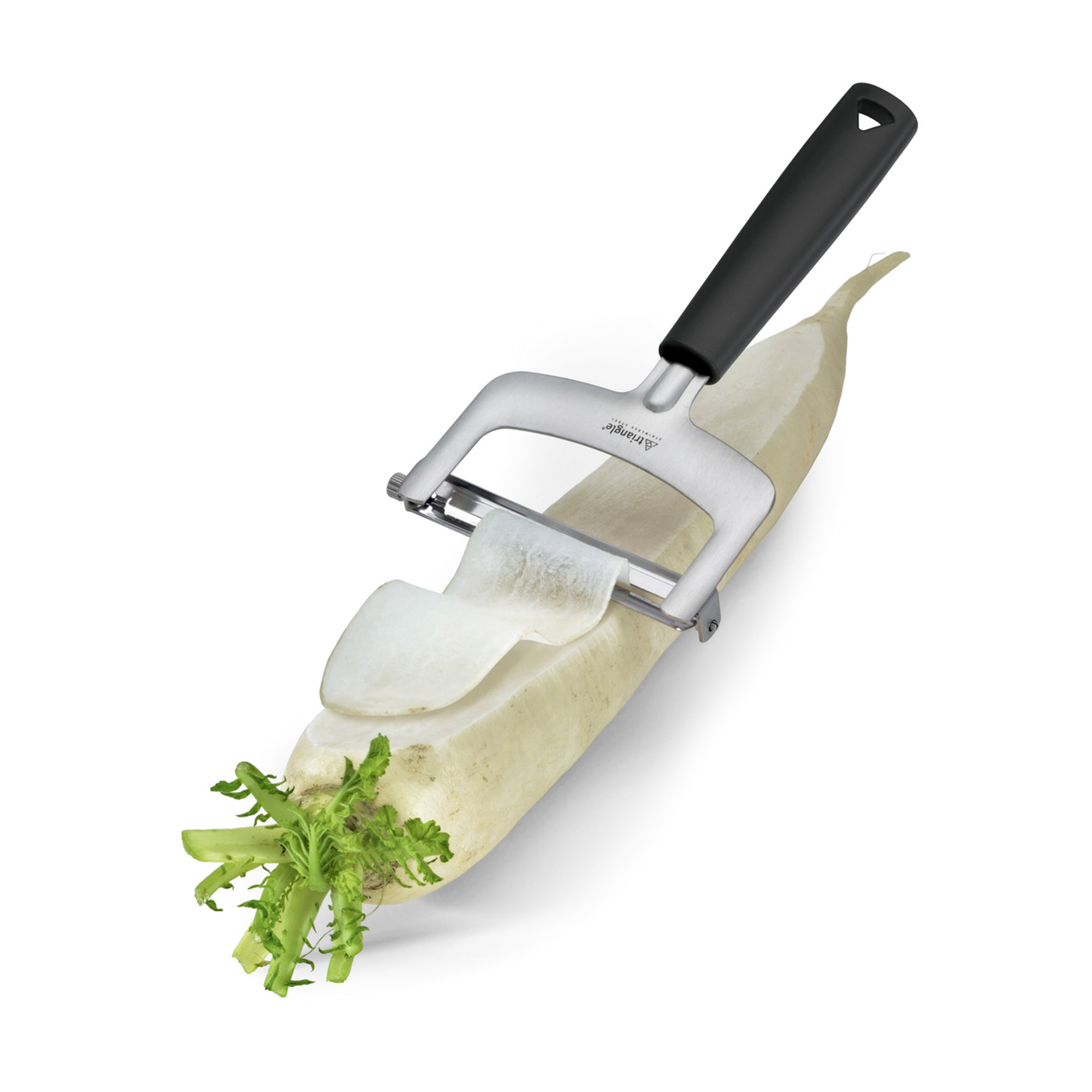 Mit seinen drei auswechselbaren Klingen, in unterschiedlichen Stärken, schneidet er wahlweise dünne oder dickere Scheiben unterschiedlicher Gemüse und erleichtert so die Zubereitung vieler kreativer Gerichte. Gemüsecarpaccio, hausgemachte Chips, Antipasti, Grillgemüse oder Gemüselasagne sind schnell und mühelos hergerichtet.