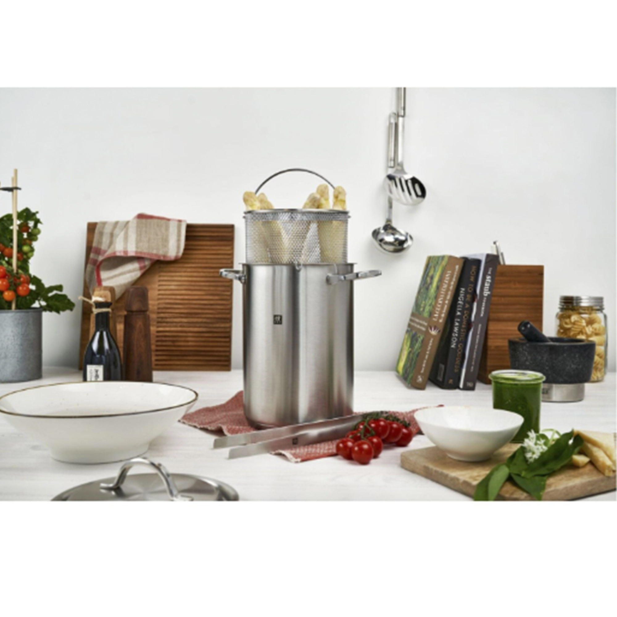 Spargel- und Pastakocher mit Einsatz und Deckel. Kann auch für Spagehtti genutzt werden. Für alle Herarten insbesondere Induktionsherde geeignet.