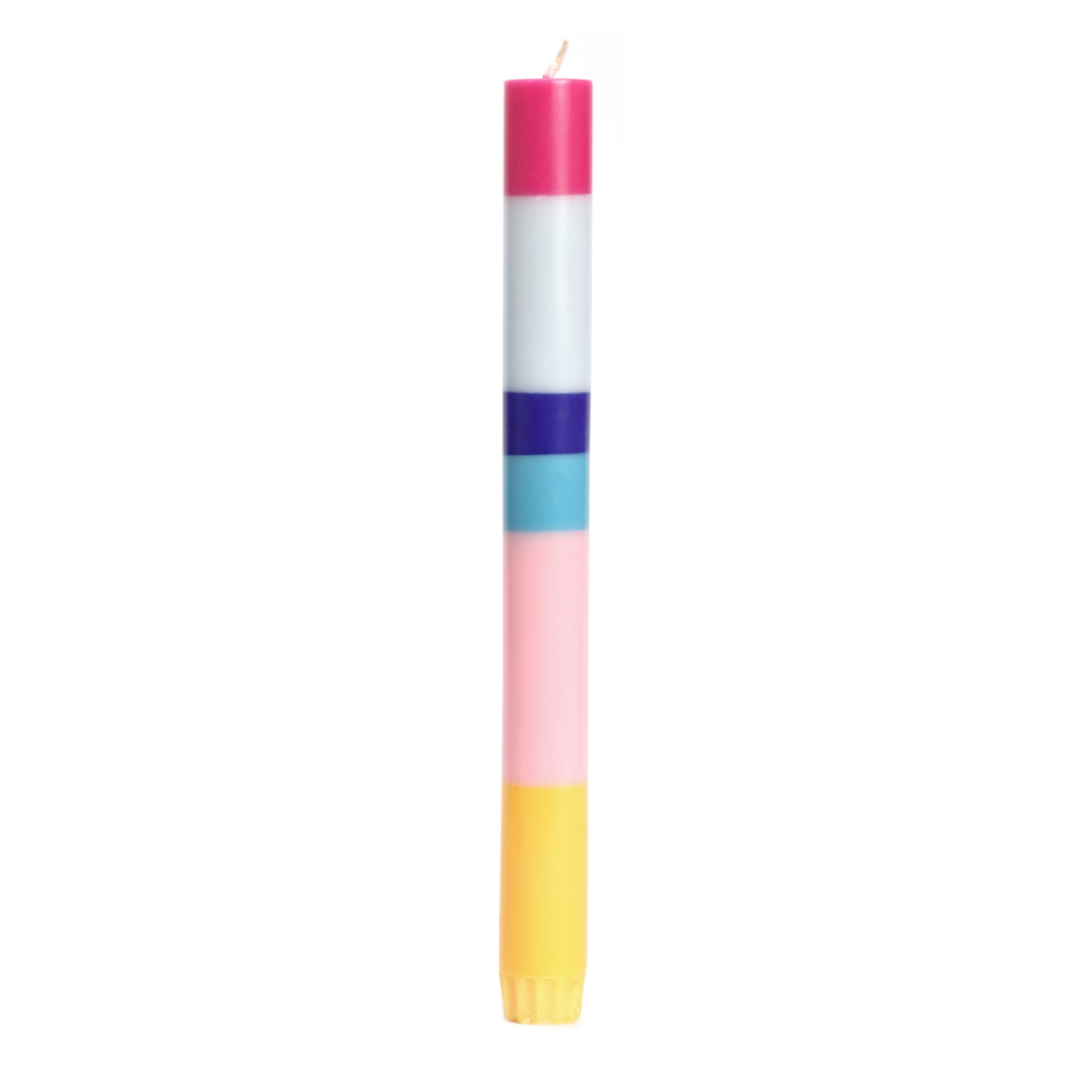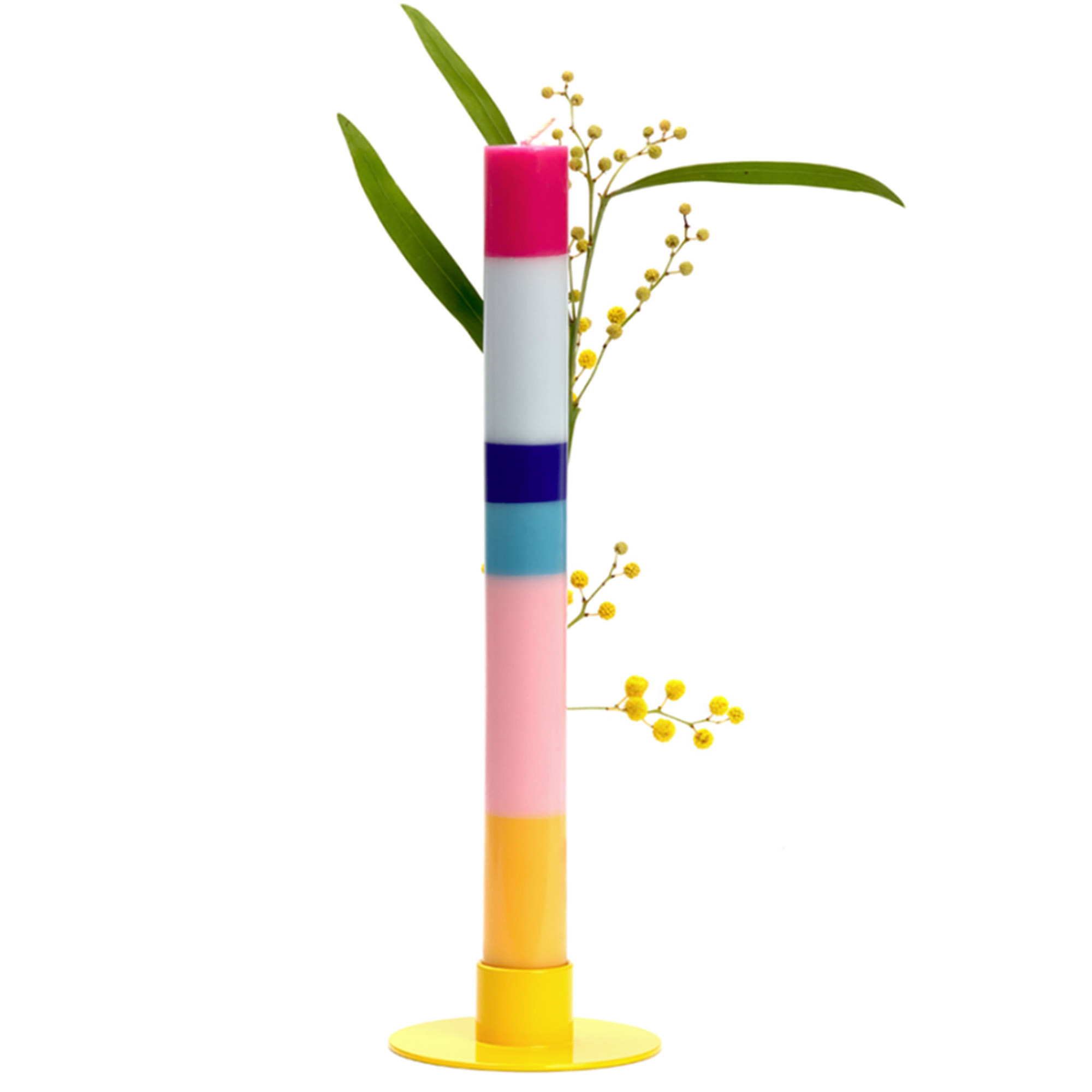 Die Geburtstagskerze erinnert mit ihrem Farbschema optisch an eine Blume und überbringt dem Beschenkten einen liebevollen und bunten Geburtstags-Gruss.