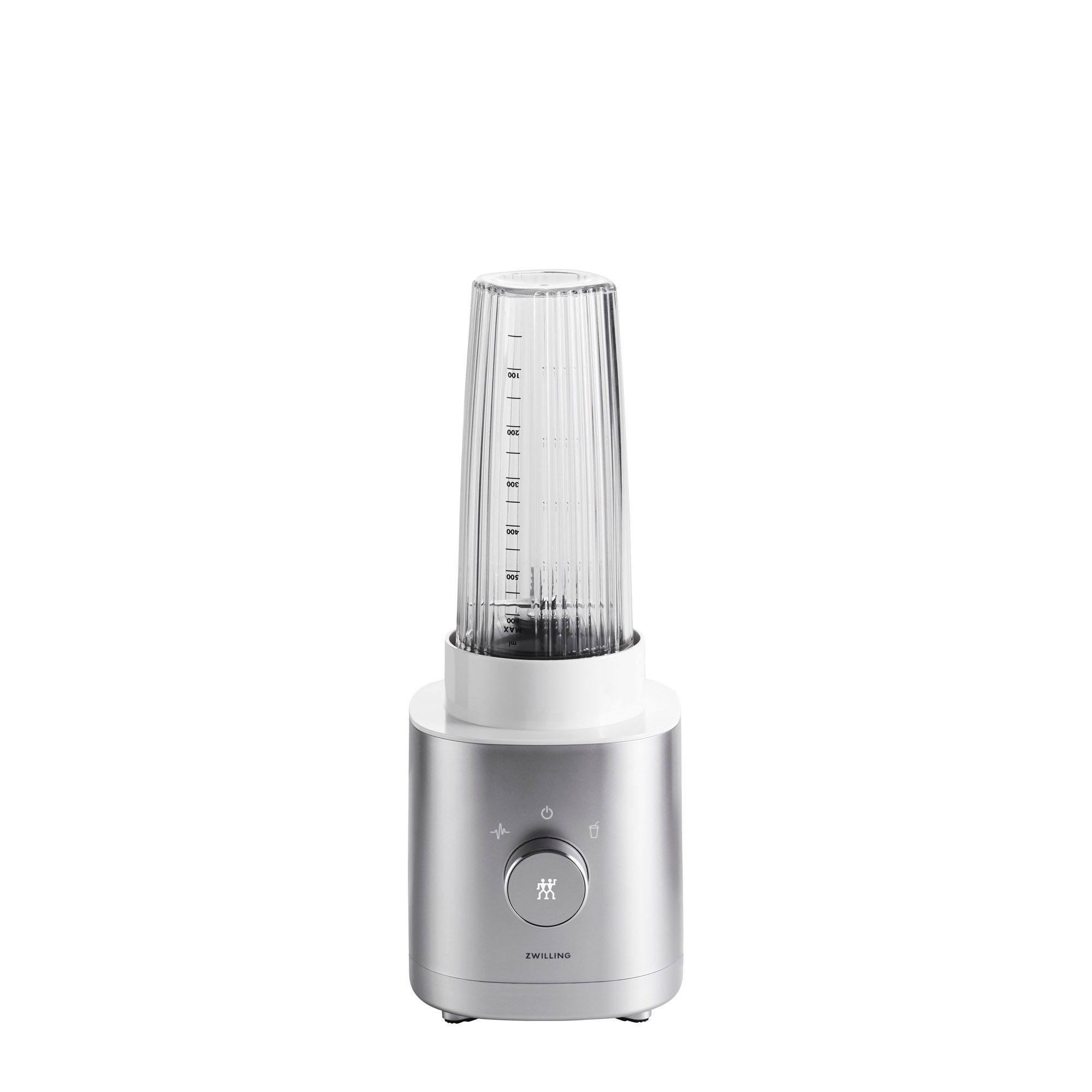 Der kleine Standmixer ist mehr als nur ein Smoothie-Maker. Mit der Original „Zwilling“ Kreuzklinge bietet der hochwertige Küchenmixer immer feinste Mixergebnisse. Sogar Nüsse und Eiswürfel lassen sich mit der Edelstahlklinge mit speziellem Wellenschliff und Piranha-Zahnung mühelos zerkleinern.