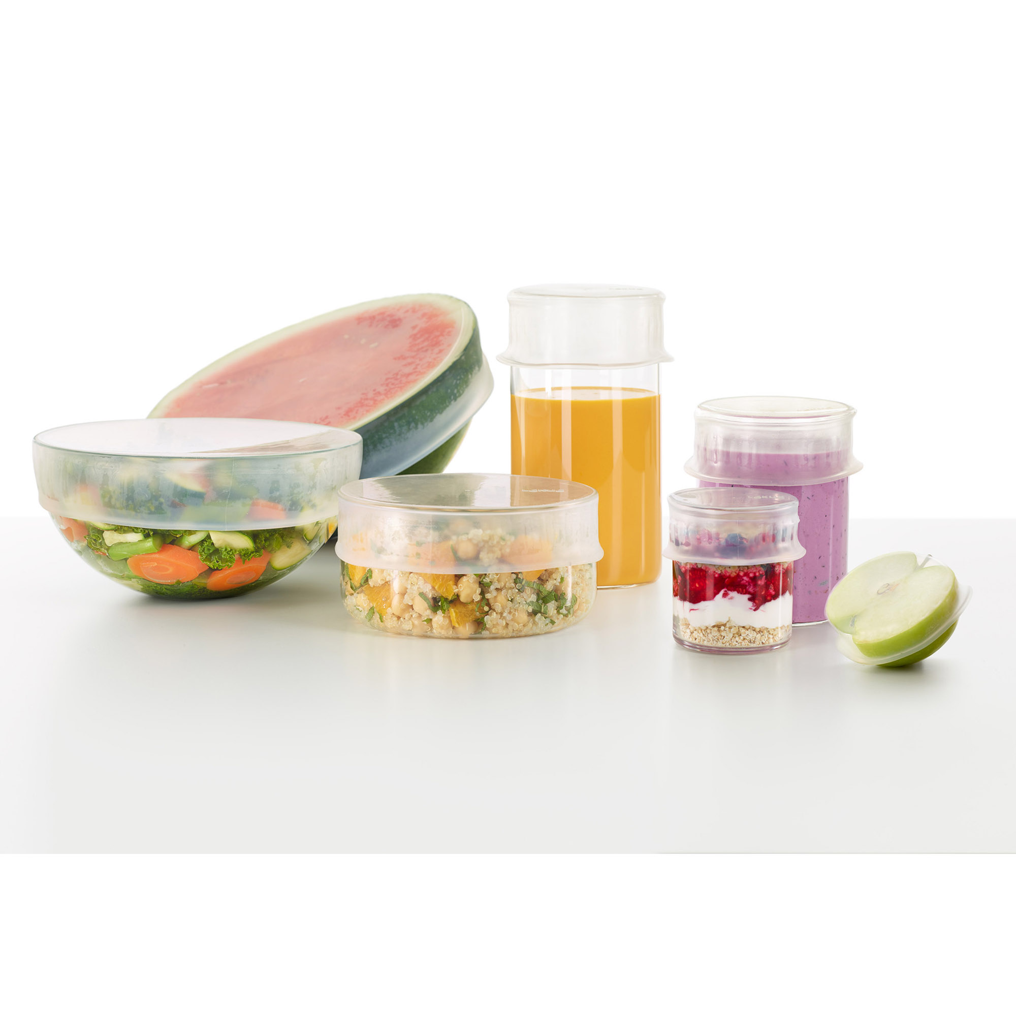Der Stretch Deckel verschliesst verschiedenste Behälter luftdicht und sicher. Er passt sich flexibel sowohl an Behältnisse, als auch an Obst- und Gemüsehälften an. Lebensmittel werden so hygienisch sauber aufbewahrt und bleiben länger frisch. Das Produkt besteht vollständig aus Platin-Silikon und ist spülmaschinenfest.