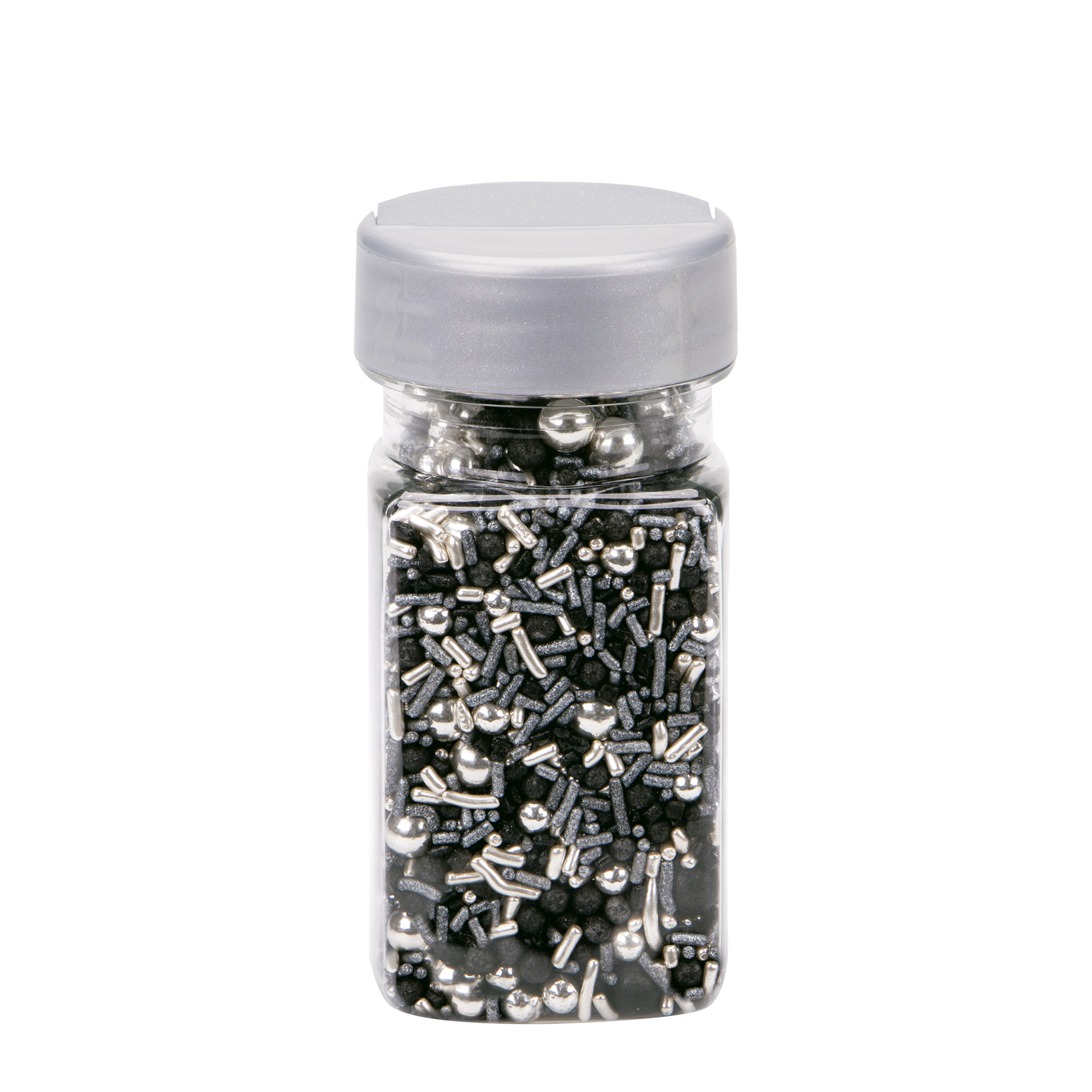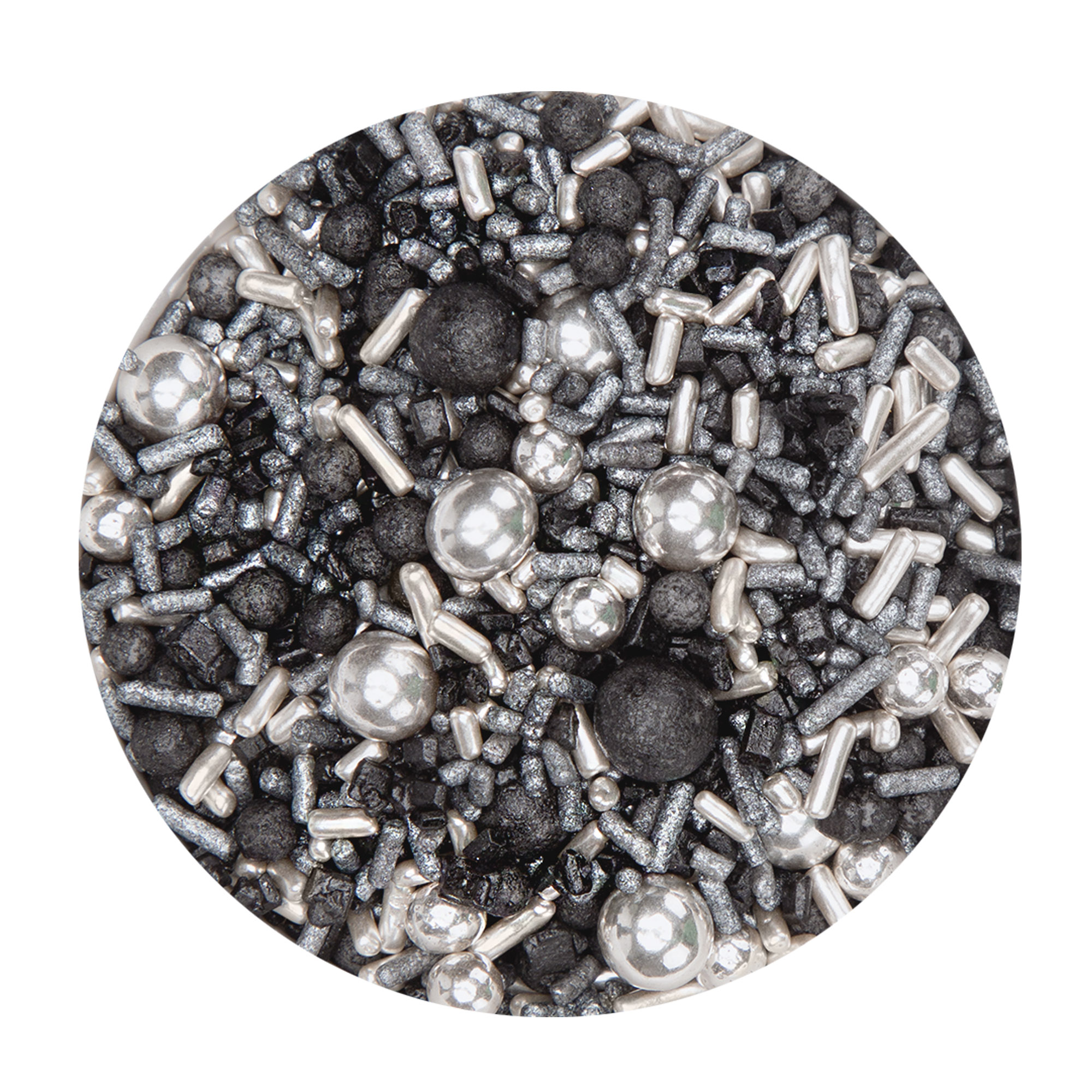 Zutaten: Zucker; Kartoffelstärke; Sonnenblumenöl; Reismehl; Farbstoffe: Pflanzenkohle (E153), Titandioxid (E171), Überzugsmittel: Schellack (E904).