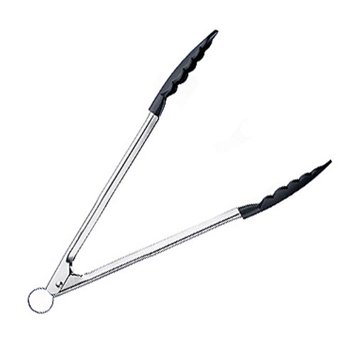 Universalzange mit Verschluss, zum Öffnen drücken, zum Verschliessen ziehen, anti-haft Enden aus Nylon, hitzeresistent bis 220 °C.