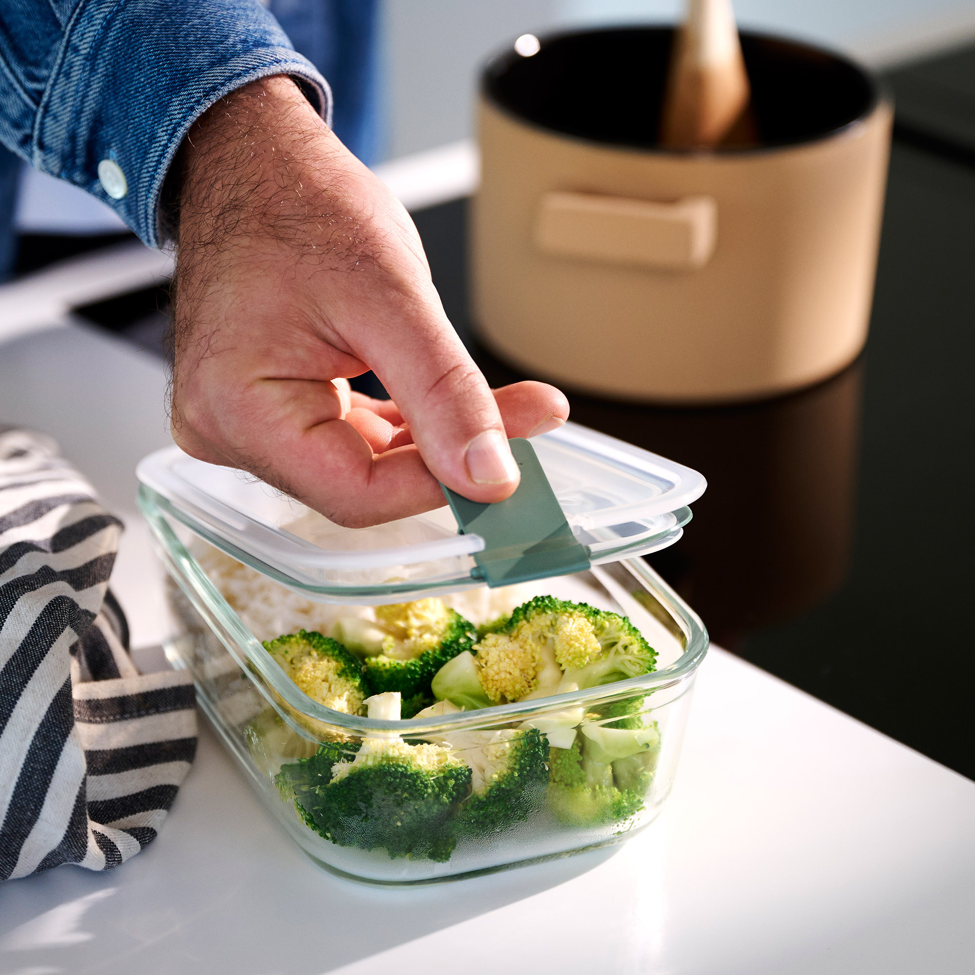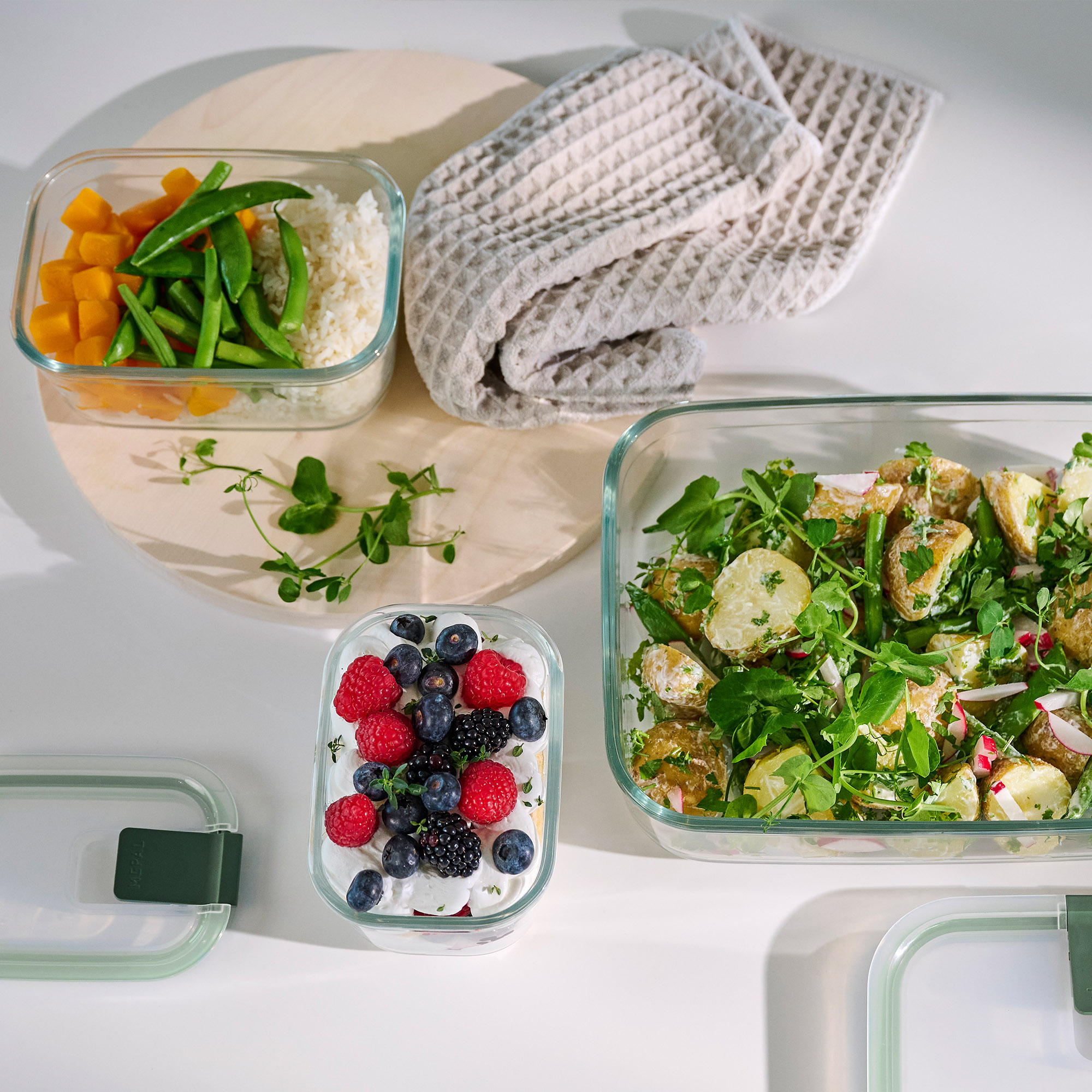 Die Frischhaltedose EasyClip aus Glas erfüllt alle Anforderungen in der Küche - ob beim Zubereiten, Aufbewahren oder Servieren.