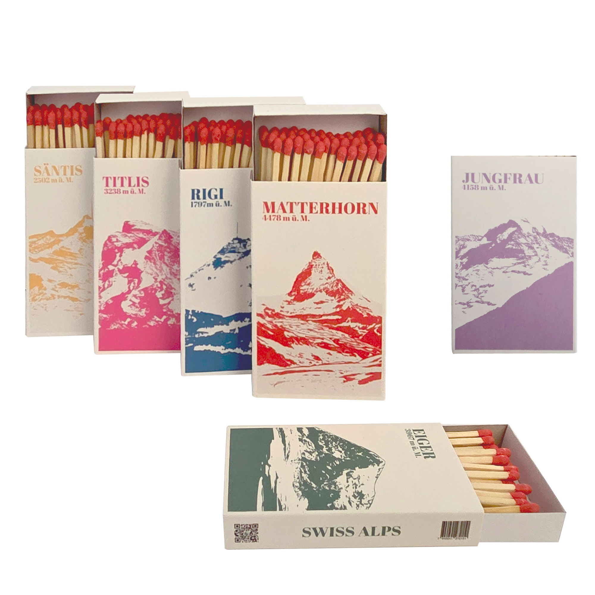 Diese Streichhölzer vereinen echten Heimatcharakter mit modernem, grafischem Design – ein kleines Stück Schweiz im Alltag. Perfekt, um das Käsefondue anzuzünden oder eine stimmungsvolle Kerze zu entfachen.
