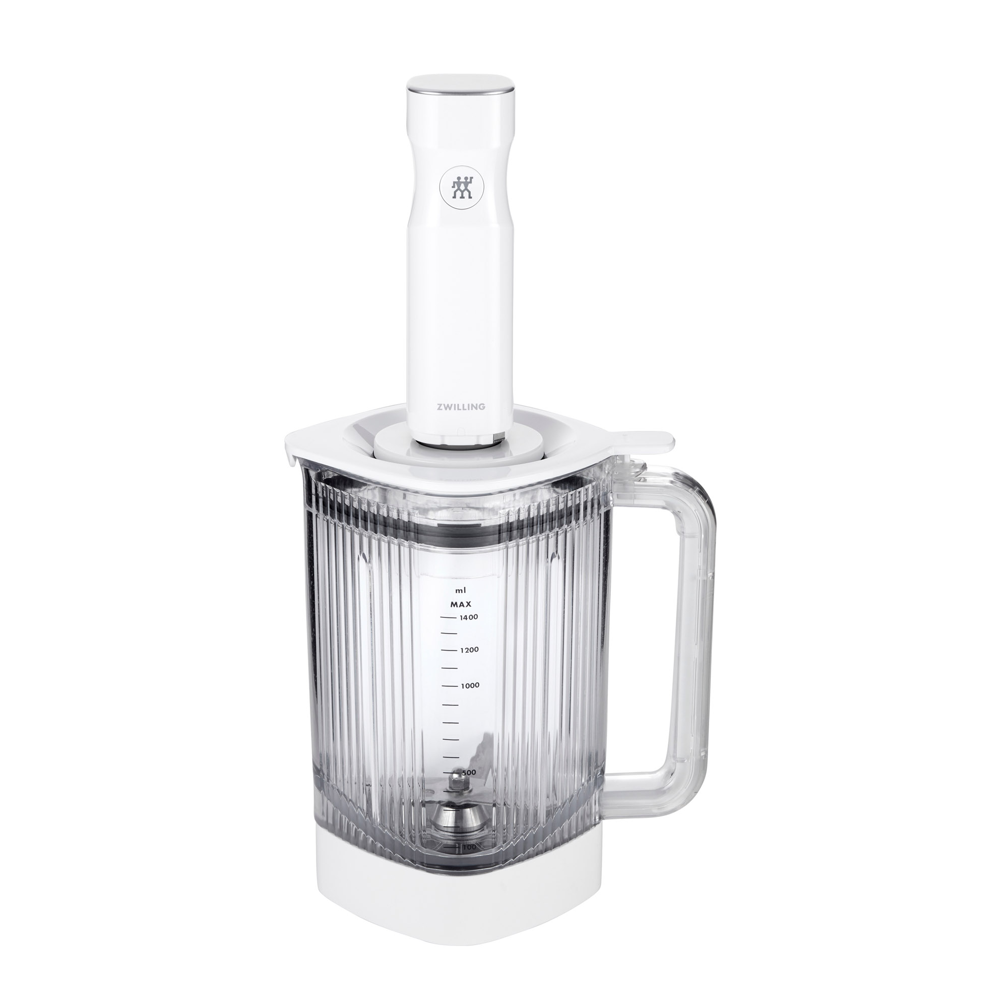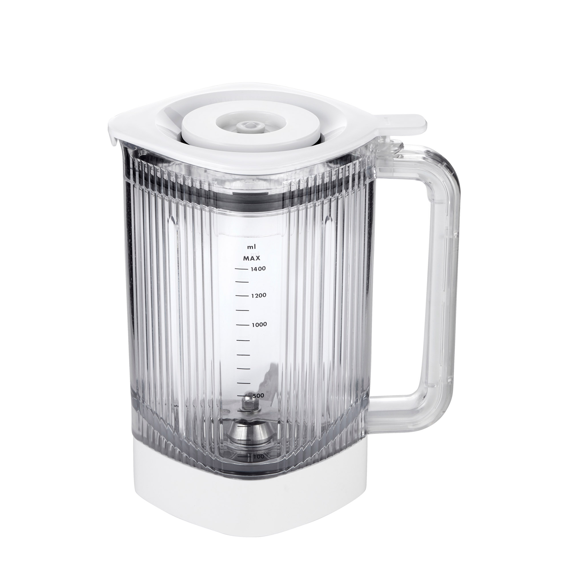 Zusatzbehälter aus Tritan mit passendem Deckel mit Vakuumadapter zum Mixen unter Vakuum, passend zum Standmixer Universal weiss.