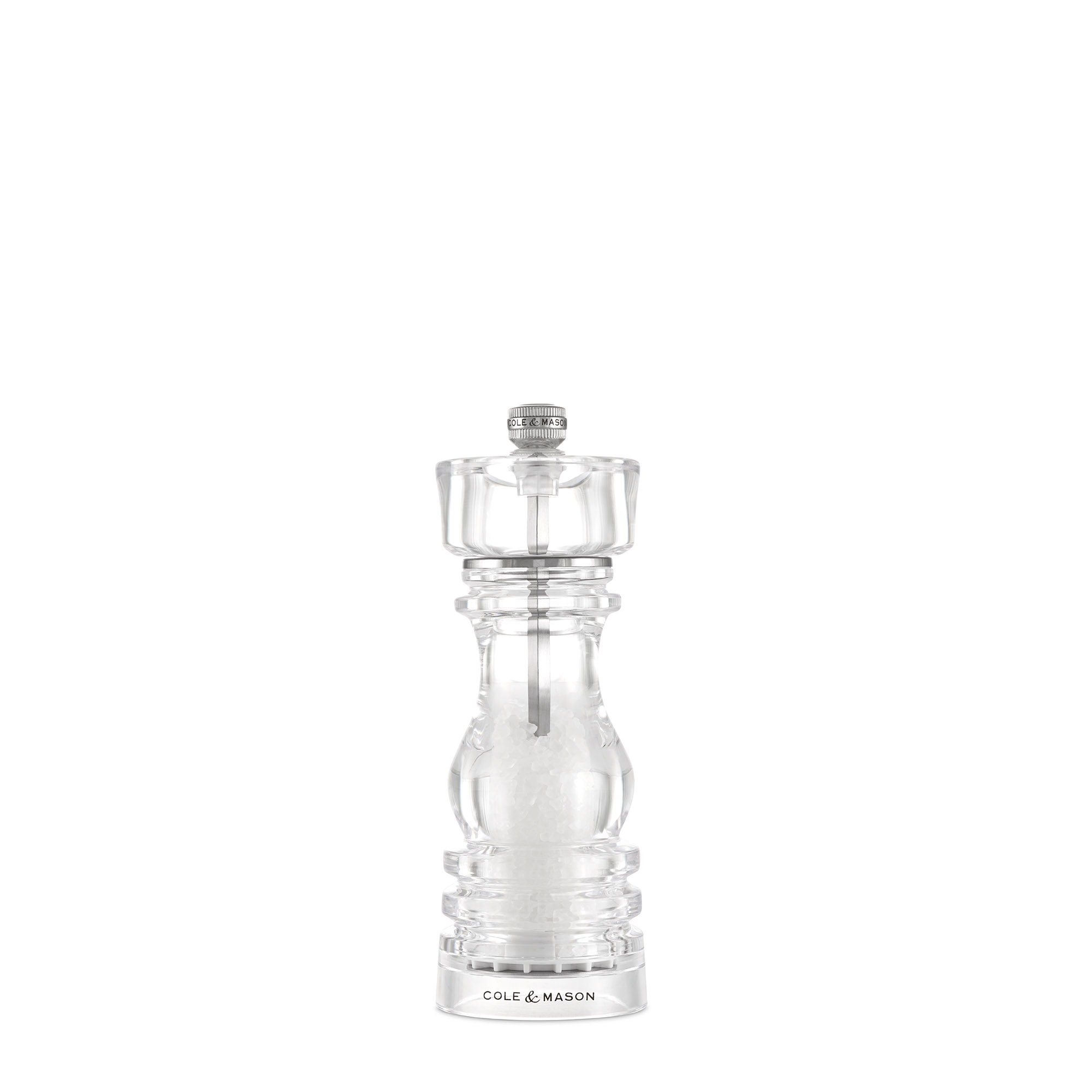The salt mill is made of robust acrylic and has a ceramic grinder. The grind can be easily adjusted by simply loosening the knob.