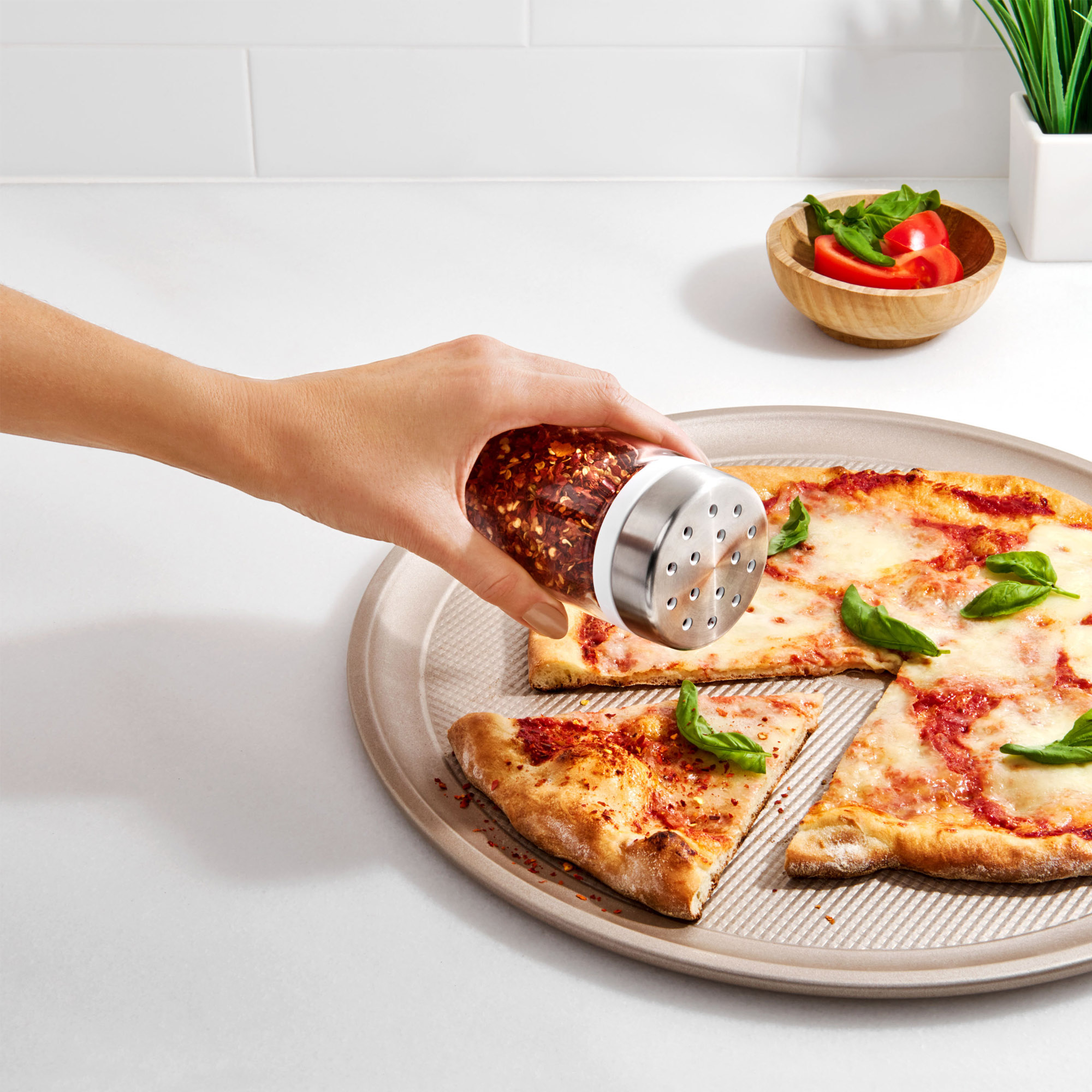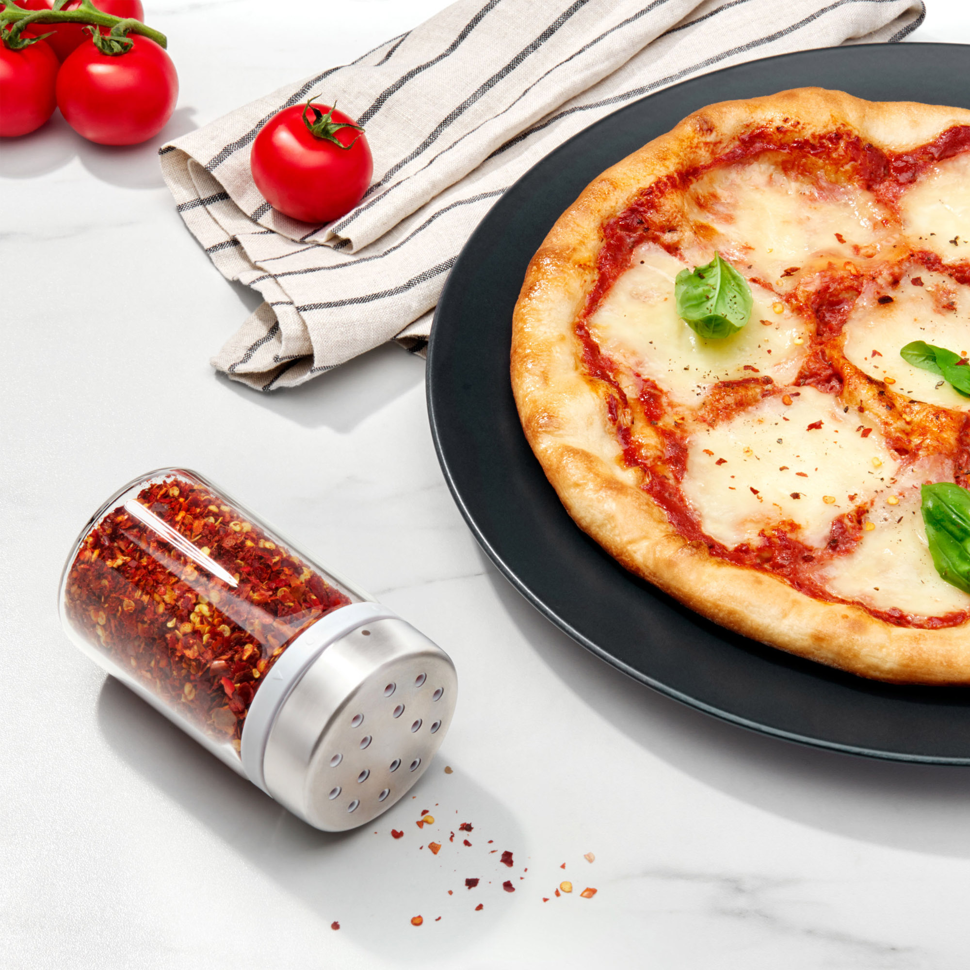 The adjustable shaker is an ideal addition to the spice rack. Ground or dried spices can be stored in it as desired. By simply turning the stainless steel lid, you can choose between large holes for coarse foods such as dried herbs and small holes for garlic powder, cinnamon and the like.