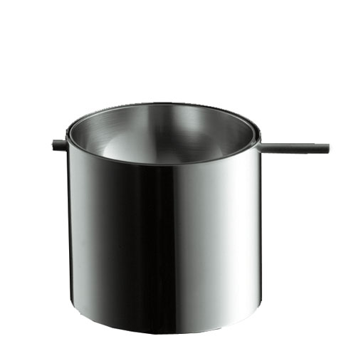 The practical part of the Stelton ashtray is the bowl, which hangs in the outer cylinder body. Ash and cigarette remains can be tipped into the lower container odour-proof with a twist