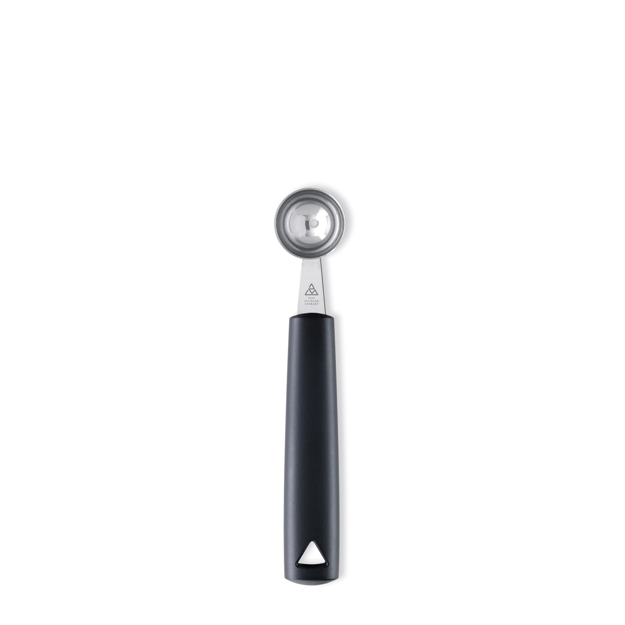 The working part of the ball former 30 mm made of stainless steel and the handle made of black plastic are dishwasher safe.