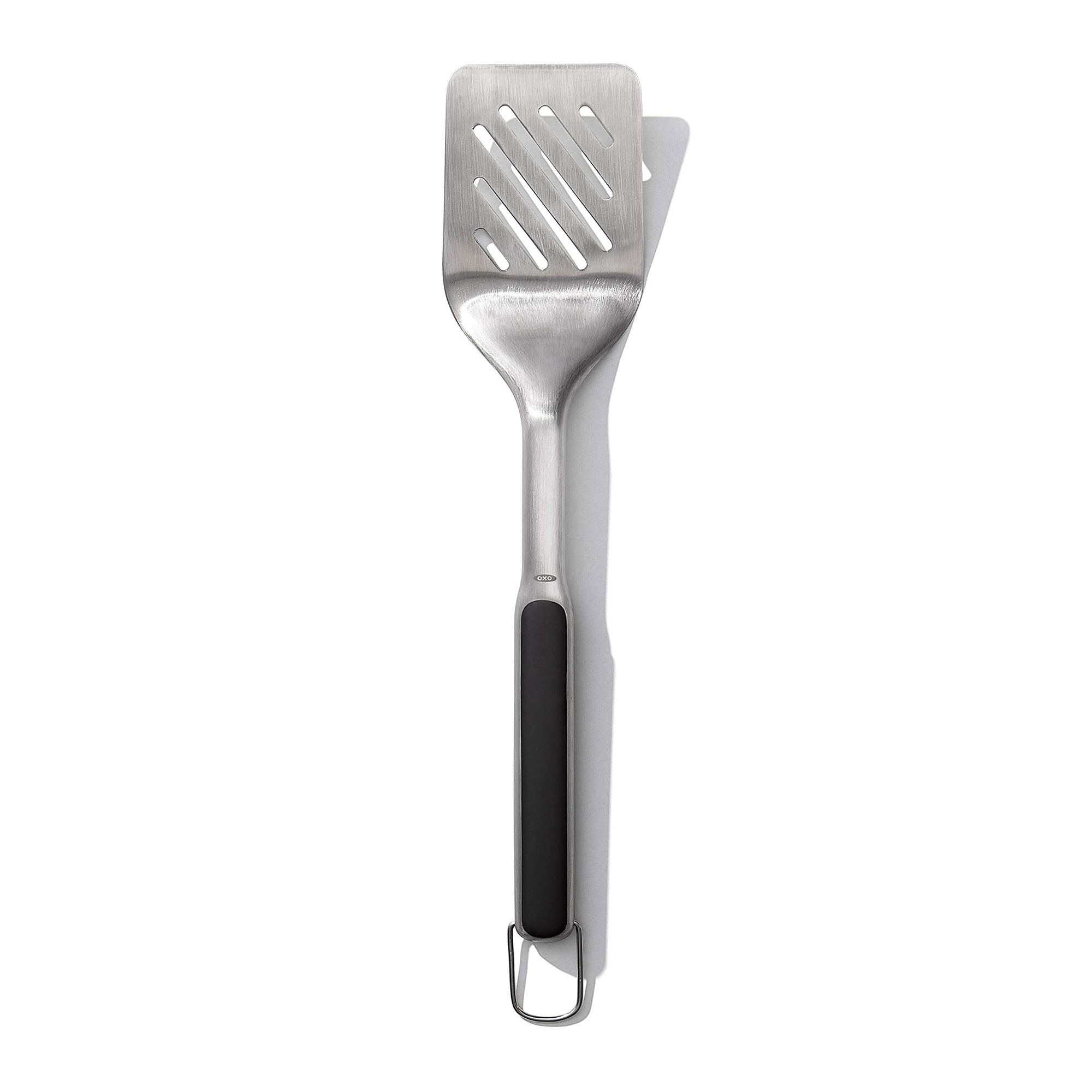 OXO's grill turner is suitable for flipping and turning burgers, fish fillets, pork chops and other grilled specialties.