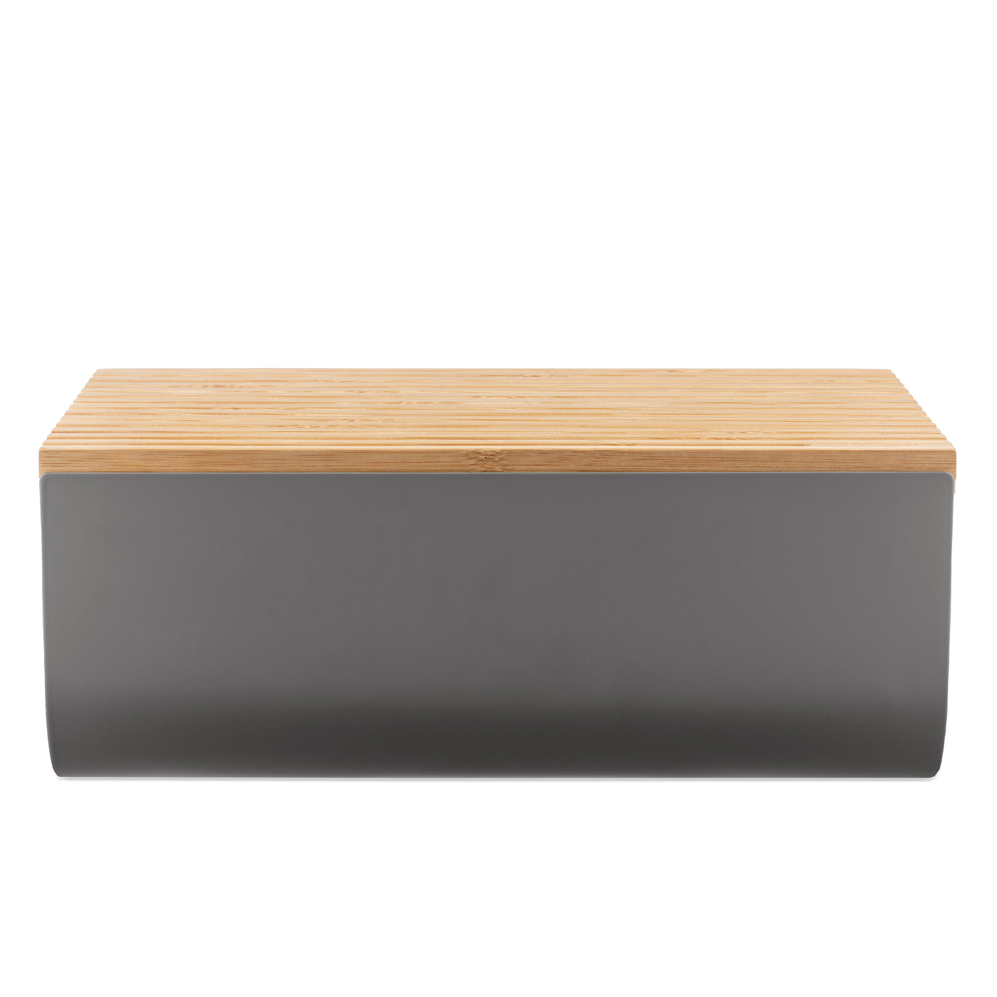 The bread box Mattina by Alessi was designed by the design trio Big-Game. It is made of steel and has a lid made of epoxy lacquered bamboo wood. The lid also serves as a cutting board and is structured so that the crumbs do not spread on the dining table. With its simple and timeless design, you can also use the box well for serving bread on the breakfast table.
