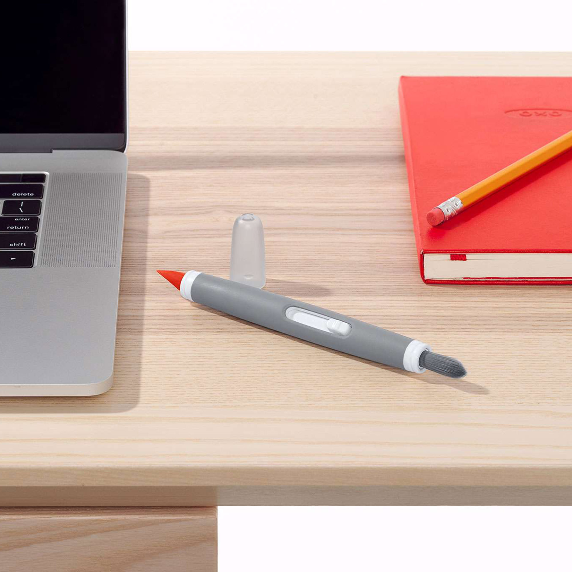 Keep phones, computers and other devices dust-free with the Electronics Cleaning Brush. A thin silicone wiper gets into tight nooks and crannies around buttons and screen edges. The brush is soft enough for camera lenses and other delicate surfaces. When you're done, simply place the cap on the wiper blade and retract the bristles, and you can conveniently store the brush in drawers, car racks, camera bags.