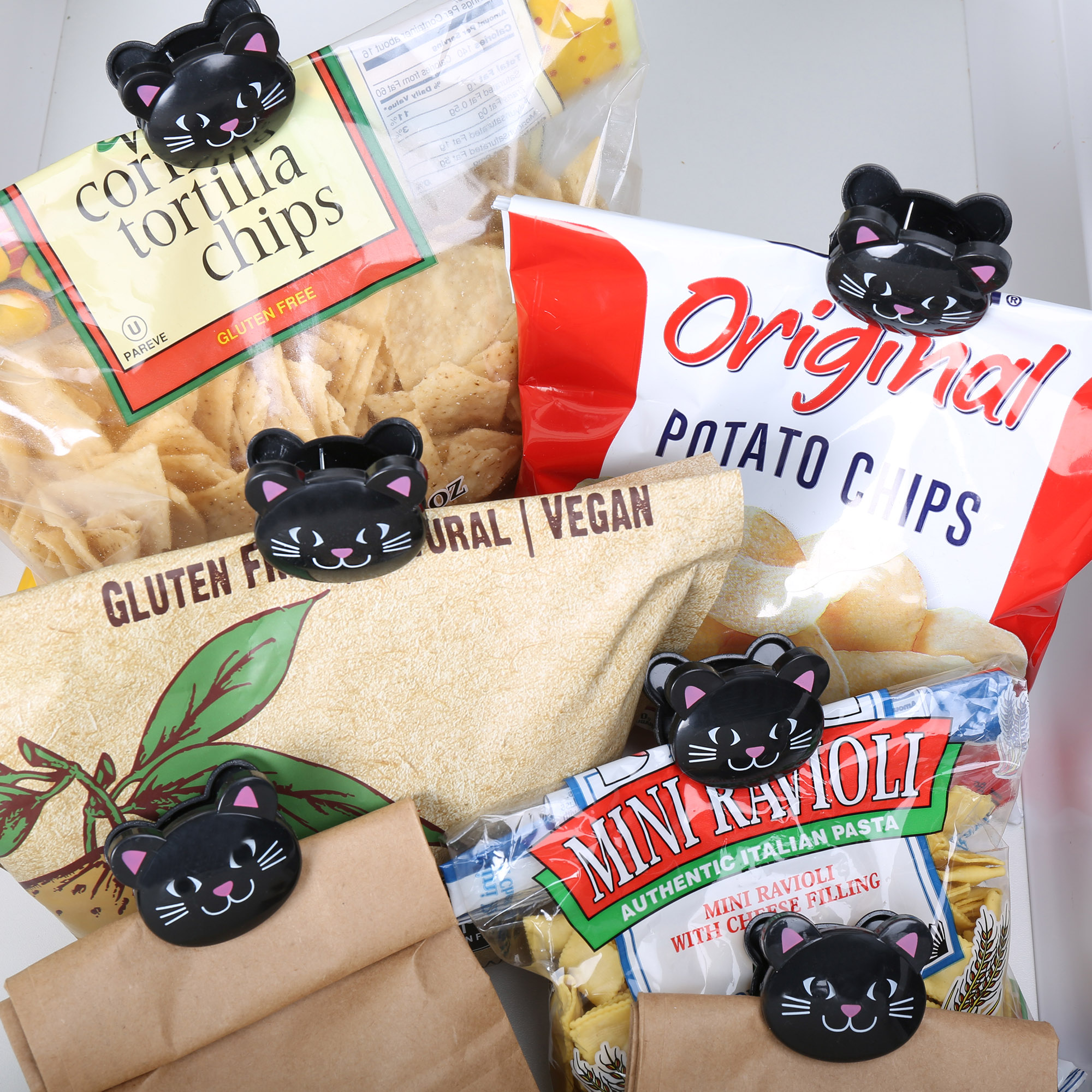 Original closure clips for plastic bags, chip bags and much more. At the sight of the cute cat faces immediately comes up a good mood!