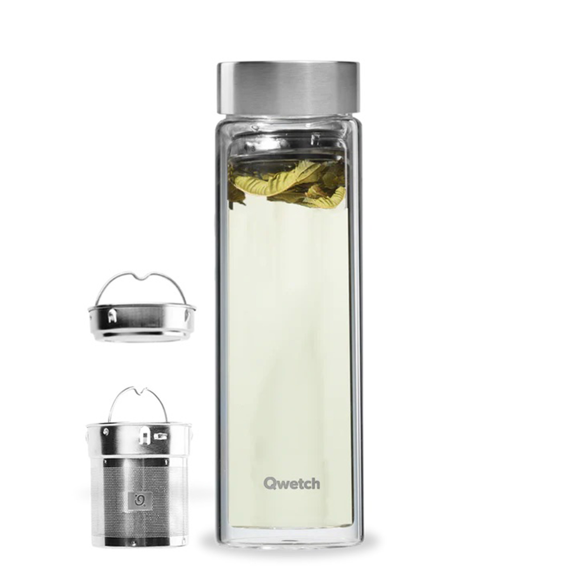 This bottle accompanies you throughout the day - whether in the office, at home or while doing everyday chores. The double-walled borosilicate glass bottle is ideal for all tea lovers. It comes with two filters: a short filter for longer infusions and a long filter for a short infusion. This allows the tea to be prepared directly inside the container. Thanks to the double glass wall, you can watch the tea brewing without burning your fingers. The insulating layer of air between the glass walls also ensures that the drink stays warm for longer.