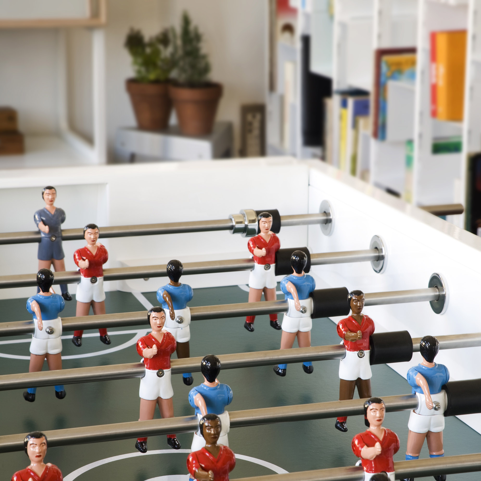 This soccer table is weatherproof and can be used indoors as well as outdoors. The figures made of solid cast aluminum are individually replaceable at any time - as all other individual parts, by the way.