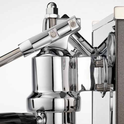 The materials of the machines are only stainless steel, chrome and brass. The brewing group pistons and sieve supports are made of highly polished, chrome-plated brass. Also the extra long steam pipe and the steam nozzle. This not only increases longevity, but also facilitates cleaning. The electrically operated top-filling chrome steel boiler (AISI314L quality) has a capacity of 1.8 litres, enough for 20 cups of classic espresso. The high performance tubular radiator made of stainless steel has a thermal fuse to protect against overheating. The high-tech seals made of Teflon and Gore-Tex also ensure perfection and longevity. The boiler pressure is already set to 0.7 to 0.8 bar and an optimum brewing temperature of 92°C at the factory. With the Cremina, it is the barista's skill to achieve the nine bar pressure on the strainer required for a perfect espresso by depressing the hand lever.