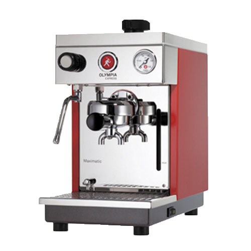 The front panel is made of highly polished stainless steel, frame and cladding are painted in high-quality and particularly resistant powder technology. The cover of the Maximatic can be used to preheat the cups. The drip tray and drip tray are removable and therefore easy to keep clean. The thermal overload protection of the heating element and the mechanical safety valve of the boiler ensure the appropriate safety. All high-tech seals are made of Teflon and Gore-Tex. An illuminated Olympia Express logo adorns the extraction button