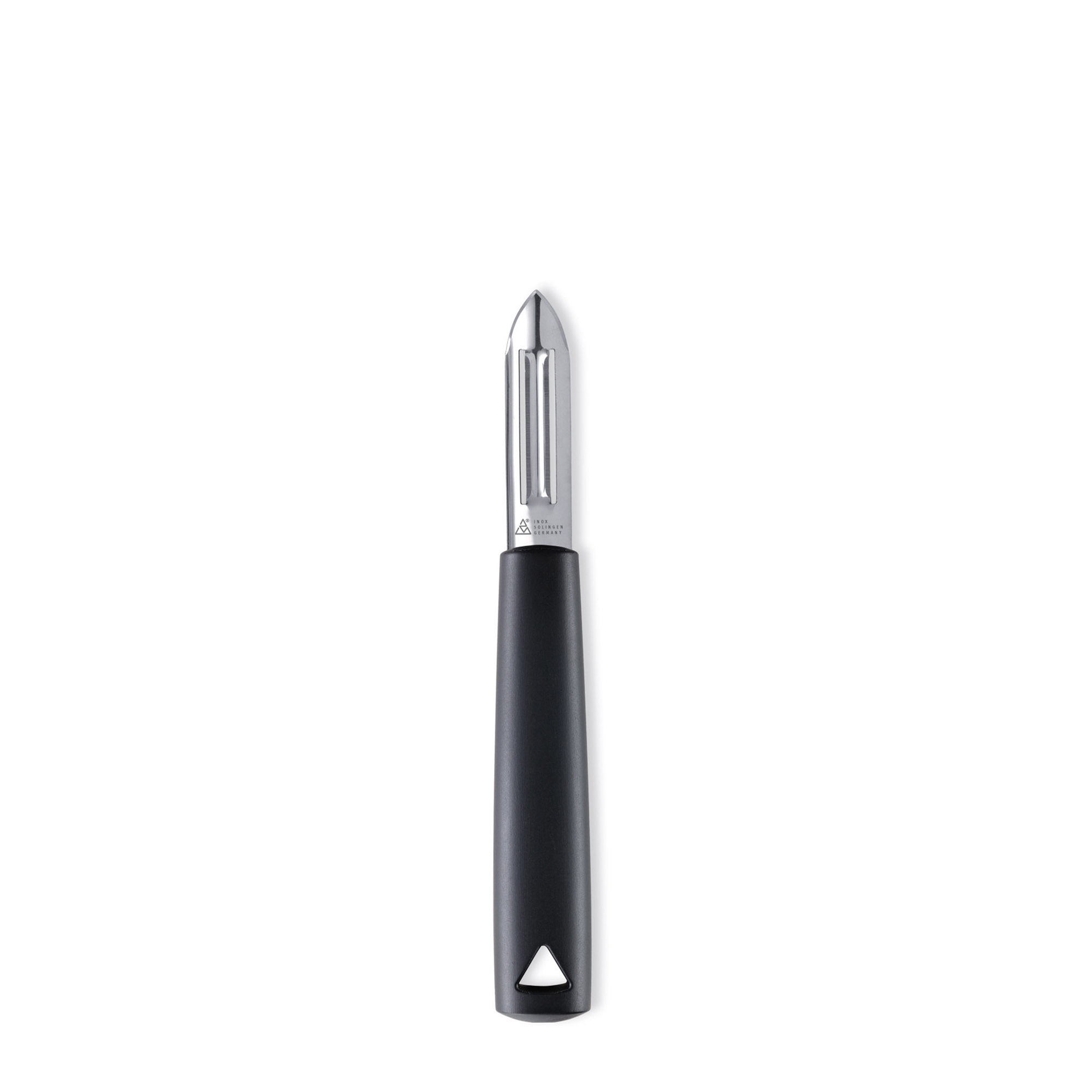 The peeler removes peels from fruit and vegetables. Due to the narrow distance between the cutting blade and the guide of the peeler, the peel is very thin.