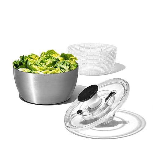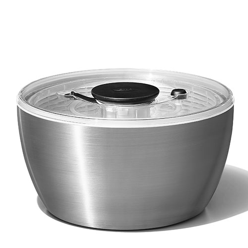 Practical and elegant salad spinner. Non-slip silicone base.