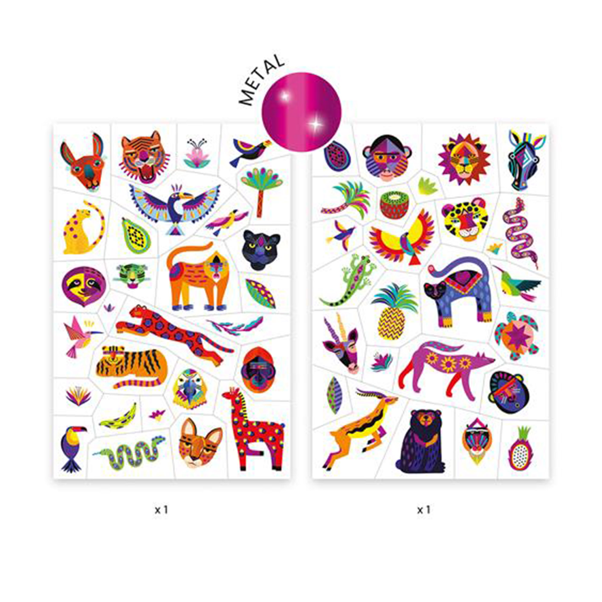 Contents: 2 sheets of temporary adhesive tattoos, 1 set of instructions